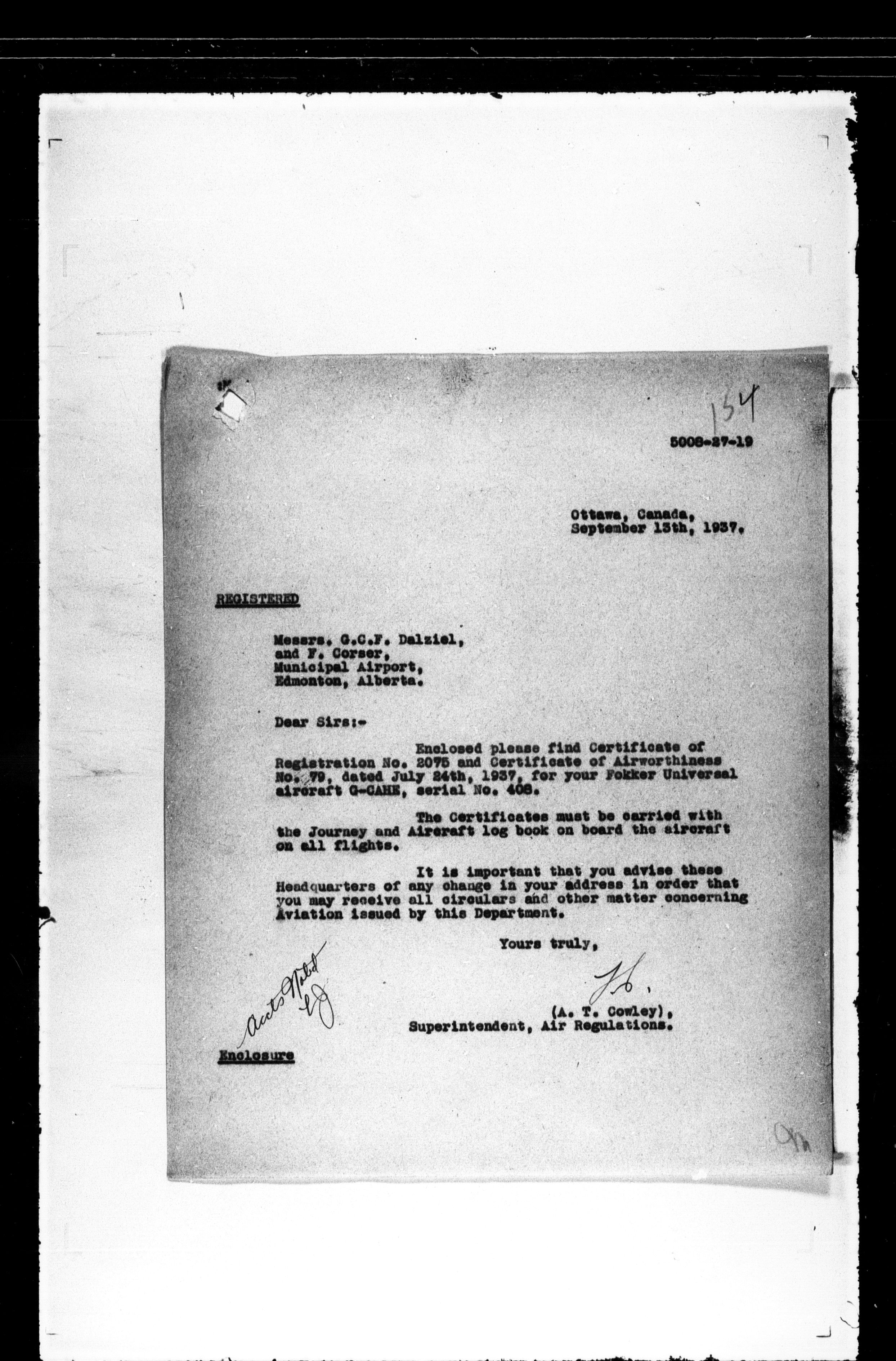 Department of Transport : Civil aircraft registration, inspection and operation files, block 5008, 1920-1986 - 7516