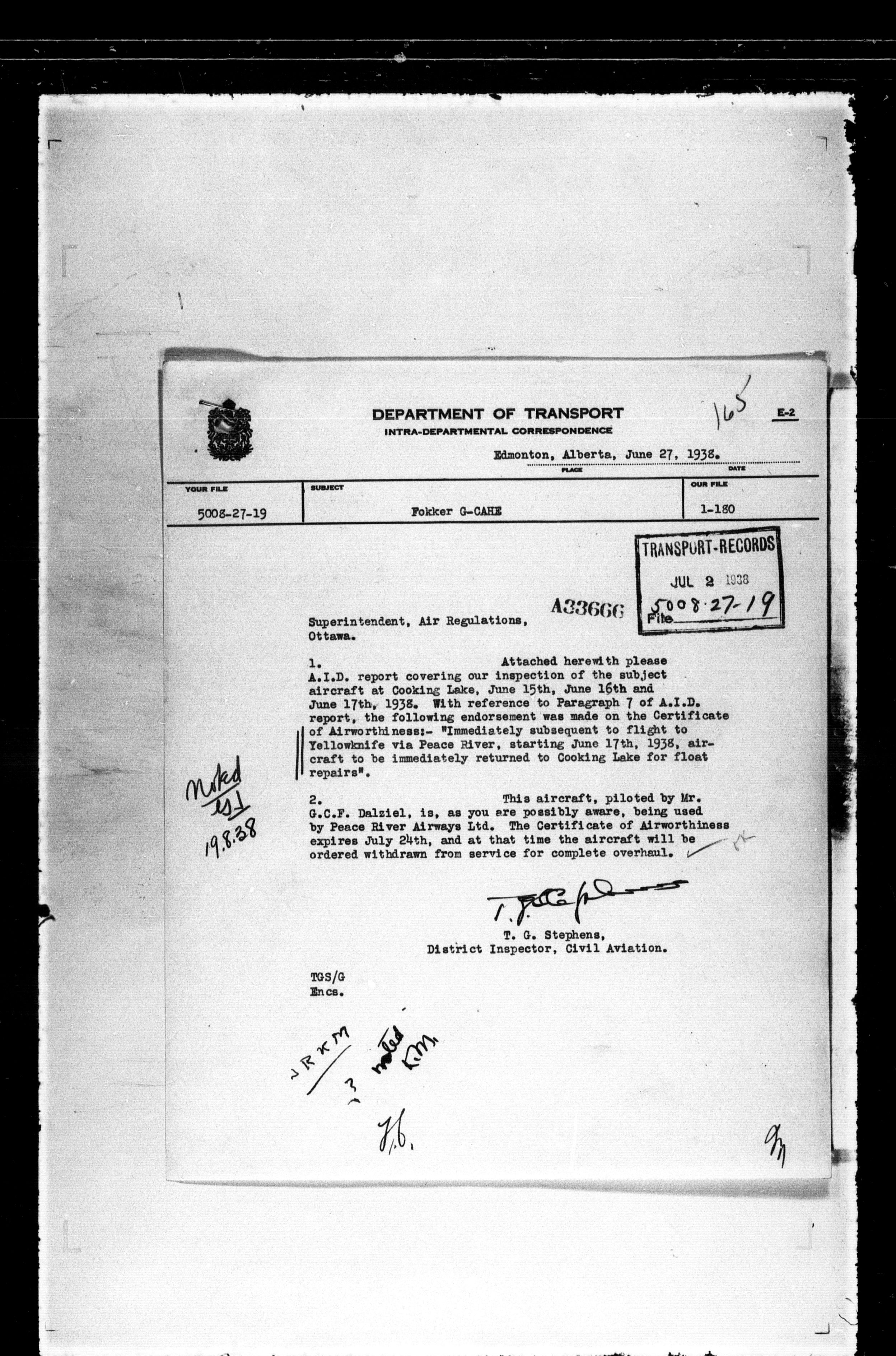 Department of Transport : Civil aircraft registration, inspection and operation files, block 5008, 1920-1986 - 7516