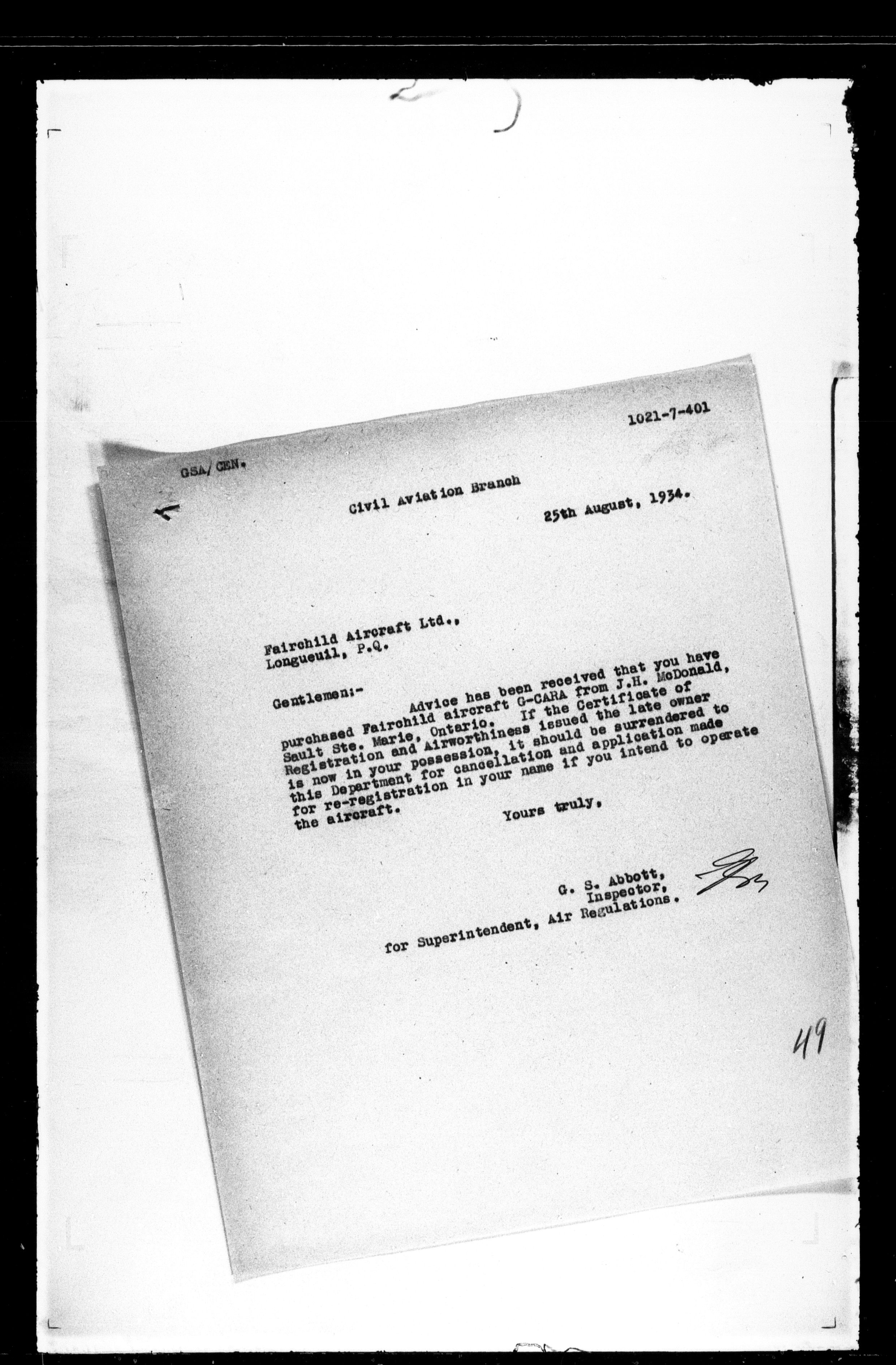 Department of Transport : Civil aircraft registration, inspection and operation files, block 5008, 1920-1986 - 7519