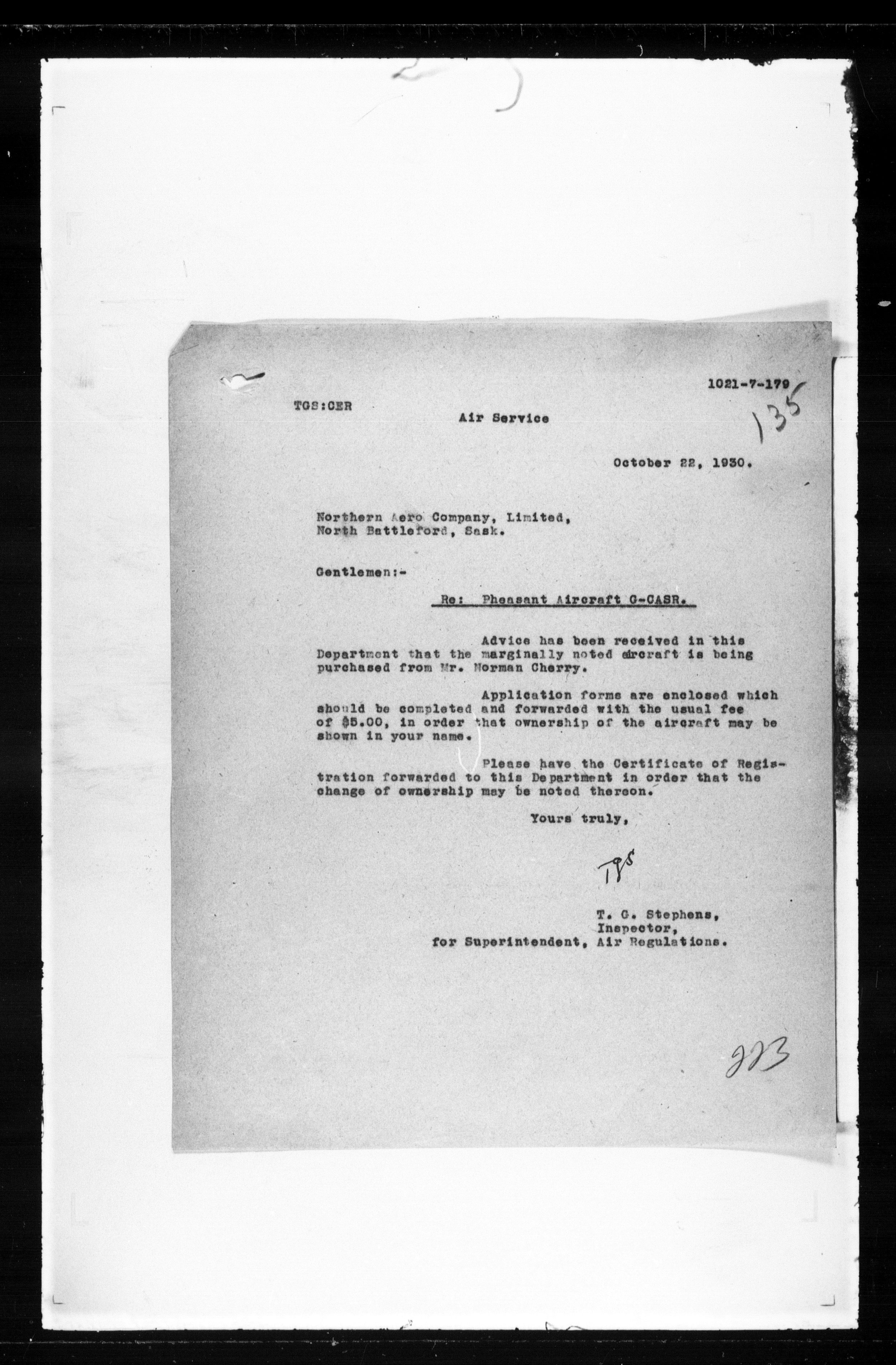Department of Transport : Civil aircraft registration, inspection and operation files, block 5008, 1920-1986 - 7520