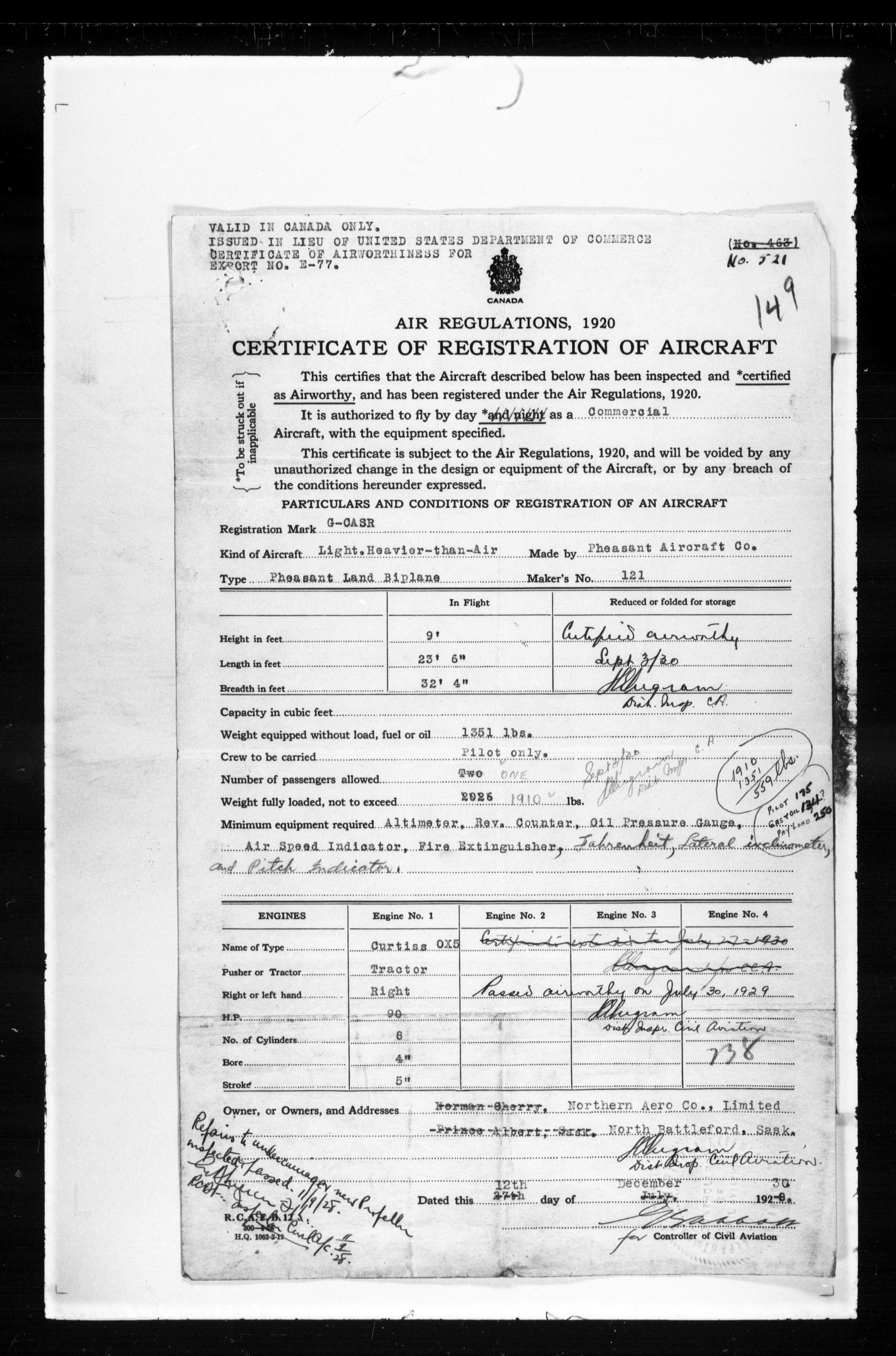 Department of Transport : Civil aircraft registration, inspection and operation files, block 5008, 1920-1986 - 7520