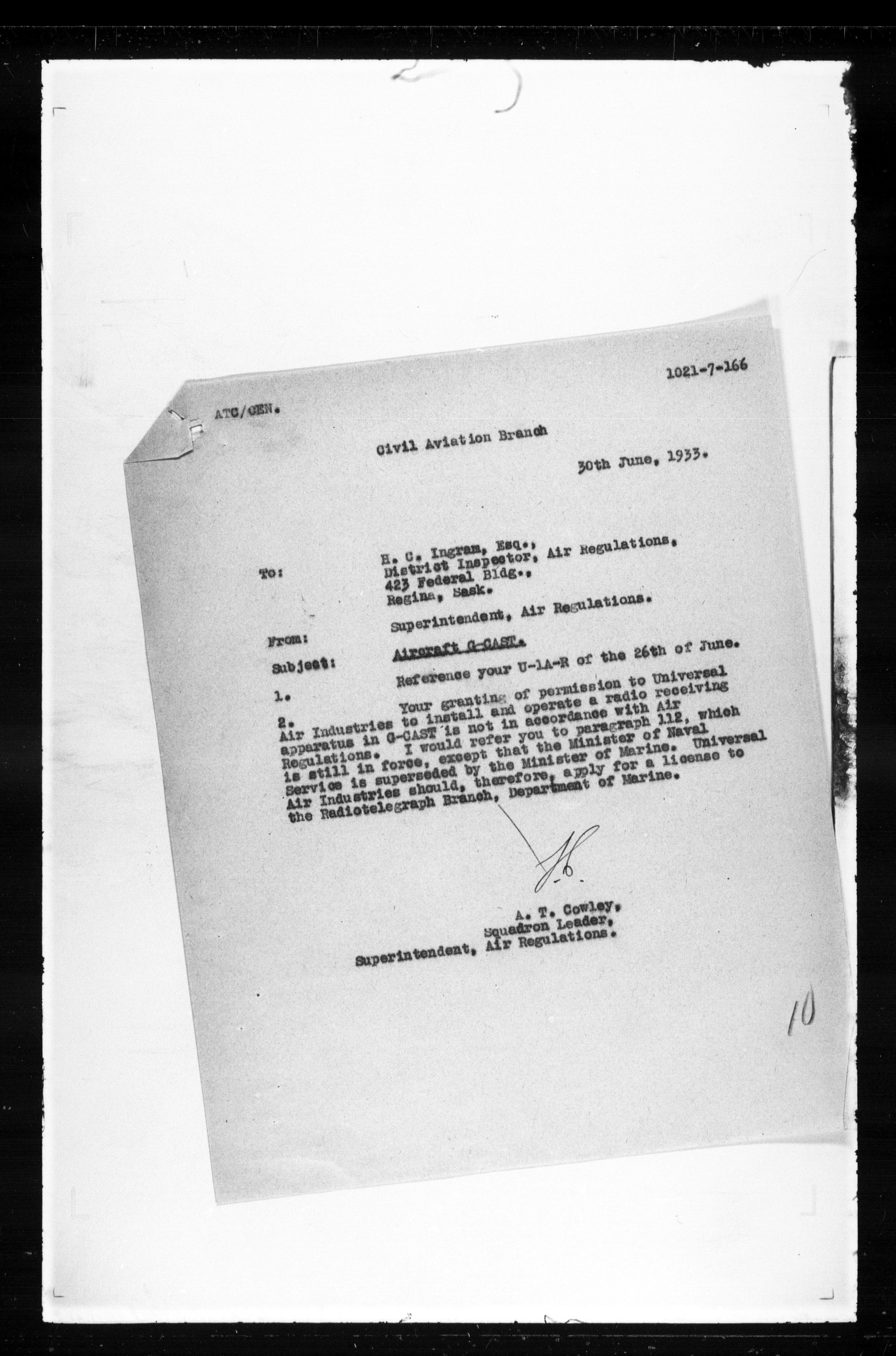Department of Transport : Civil aircraft registration, inspection and operation files, block 5008, 1920-1986 - 7520