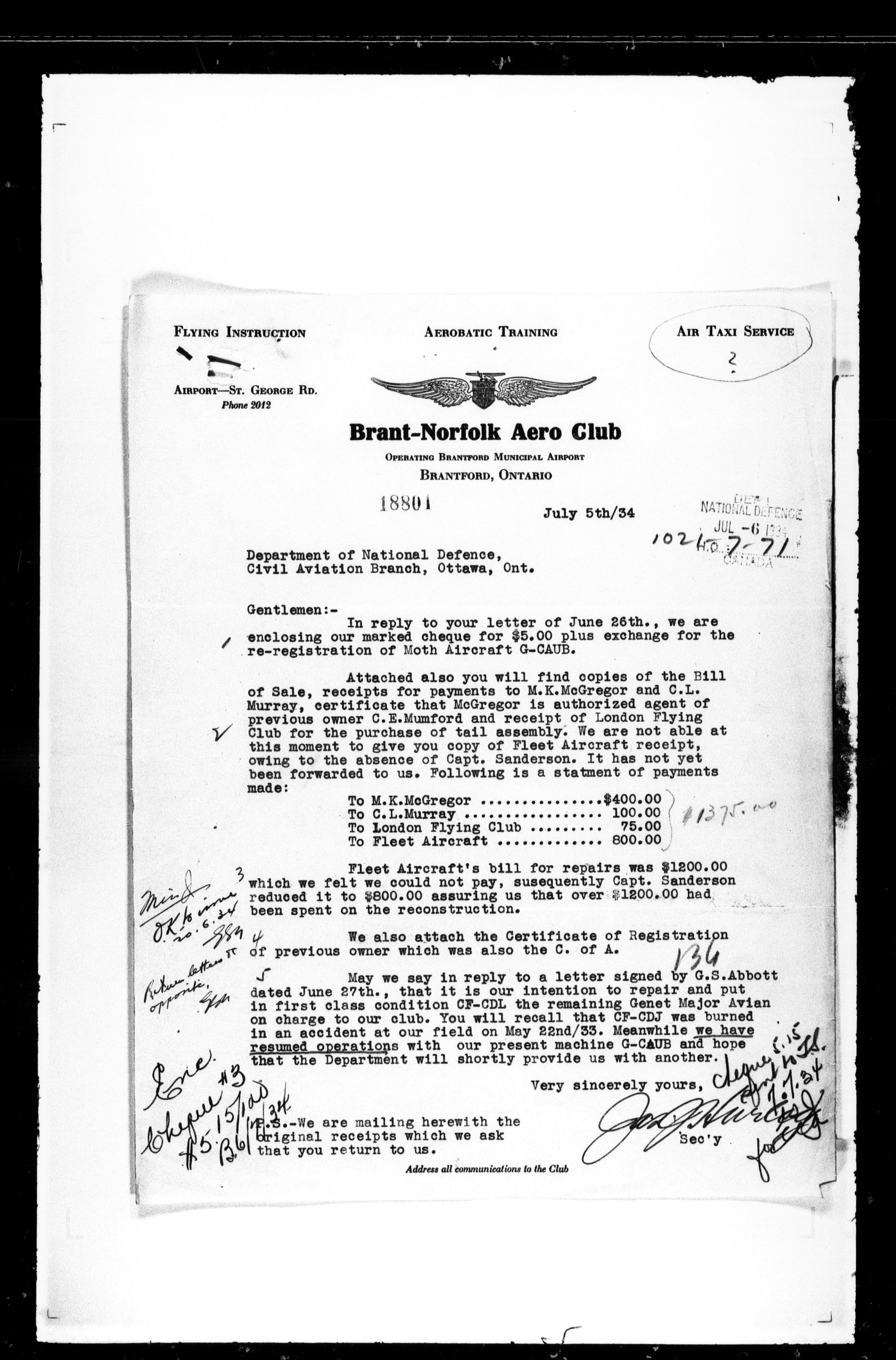 Department of Transport : Civil aircraft registration, inspection and operation files, block 5008, 1920-1986 - 7521