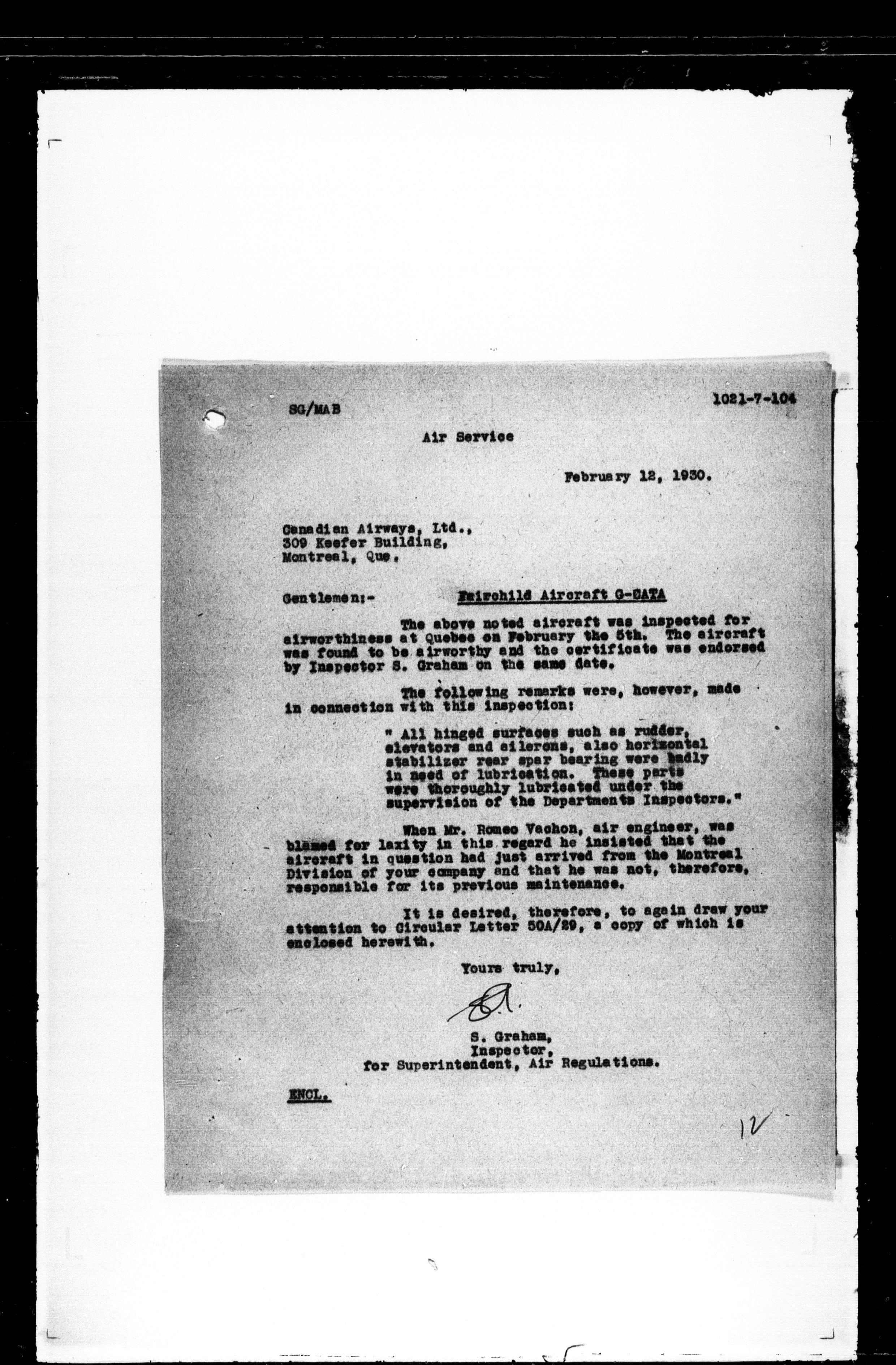 Department of Transport : Civil aircraft registration, inspection and operation files, 1920-1986 : T-7521