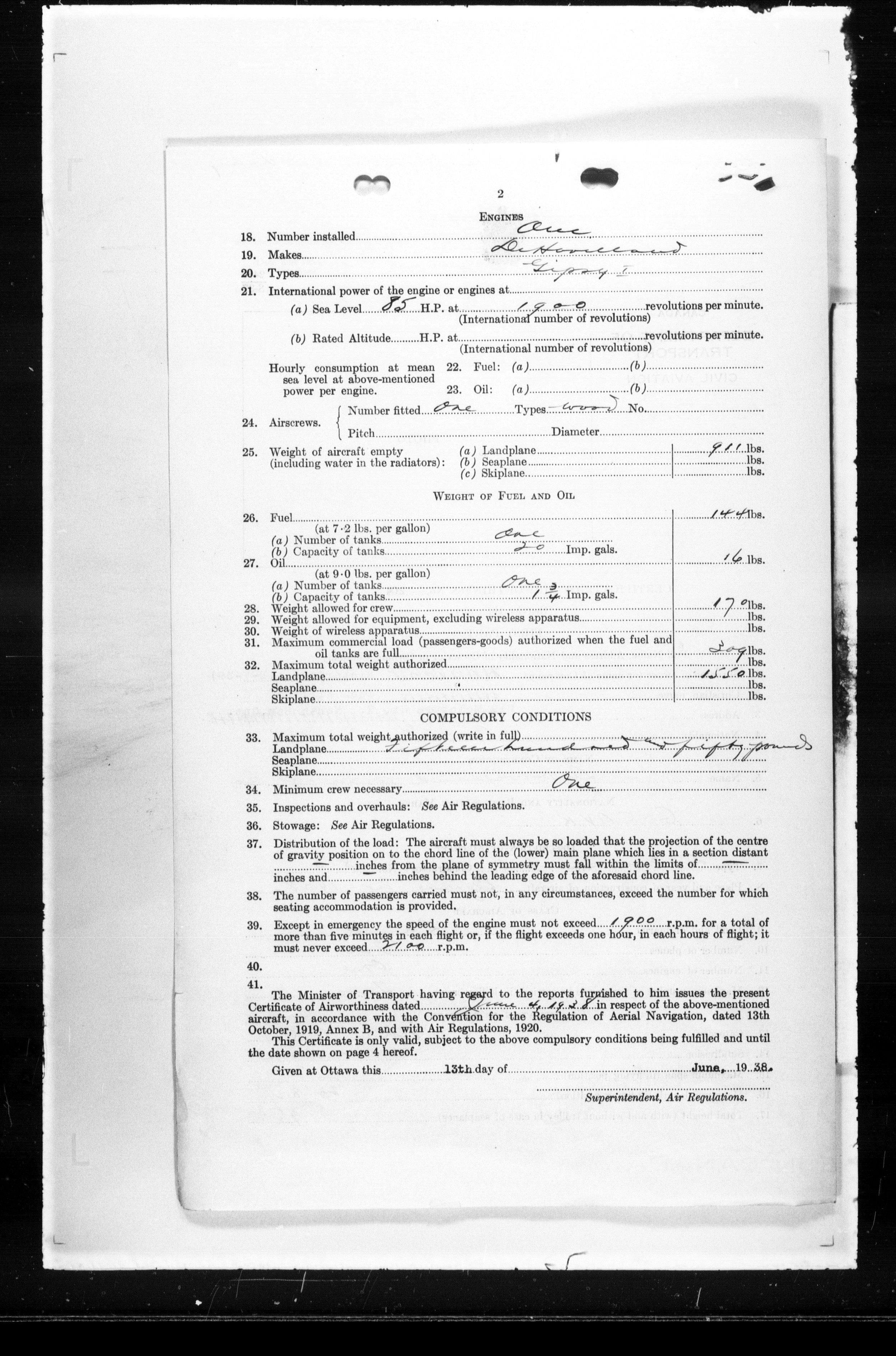 Department of Transport : Civil aircraft registration, inspection and operation files, block 5008, 1920-1986 - 7522