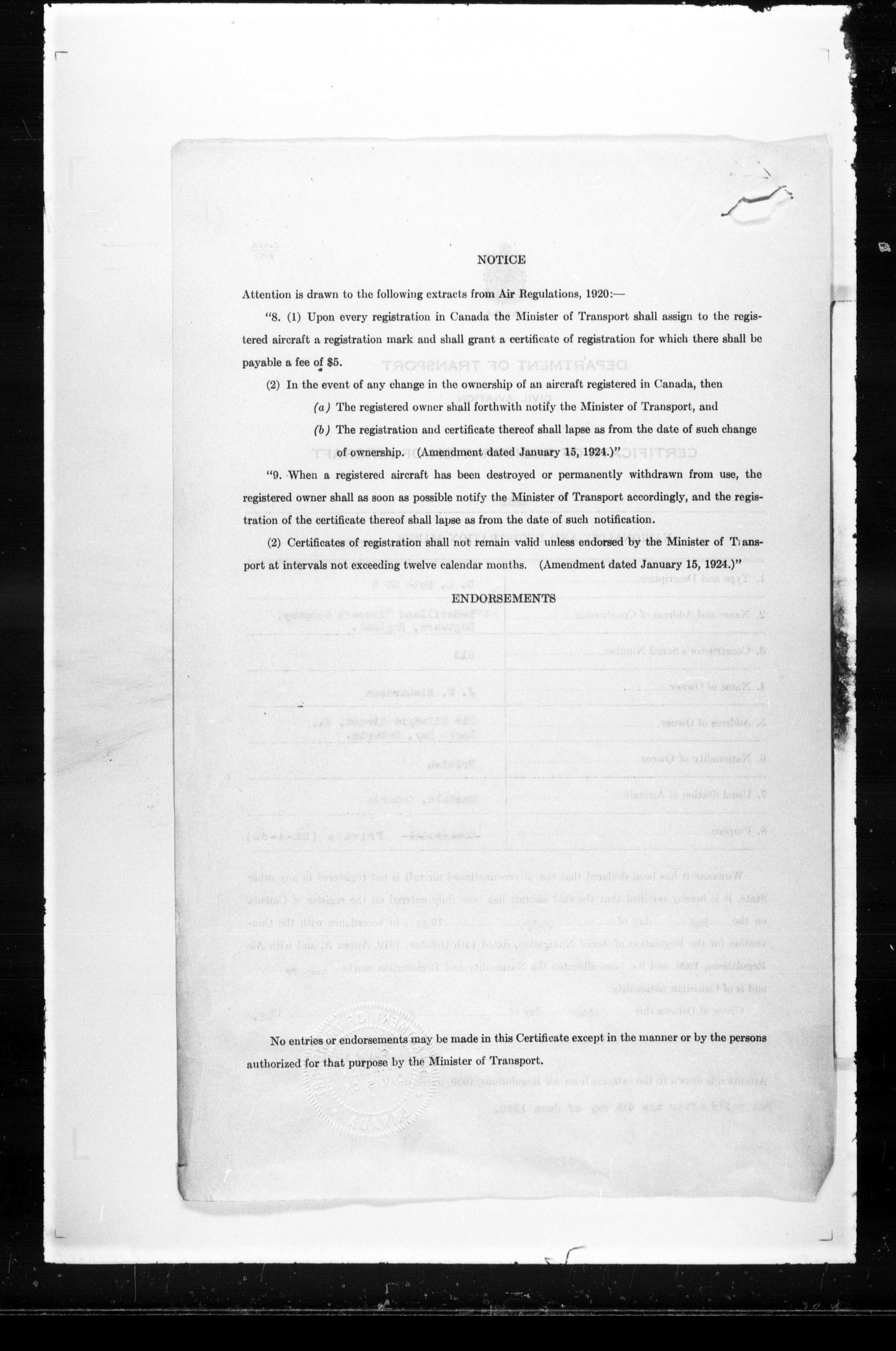 Department of Transport : Civil aircraft registration, inspection and operation files, block 5008, 1920-1986 - 7522