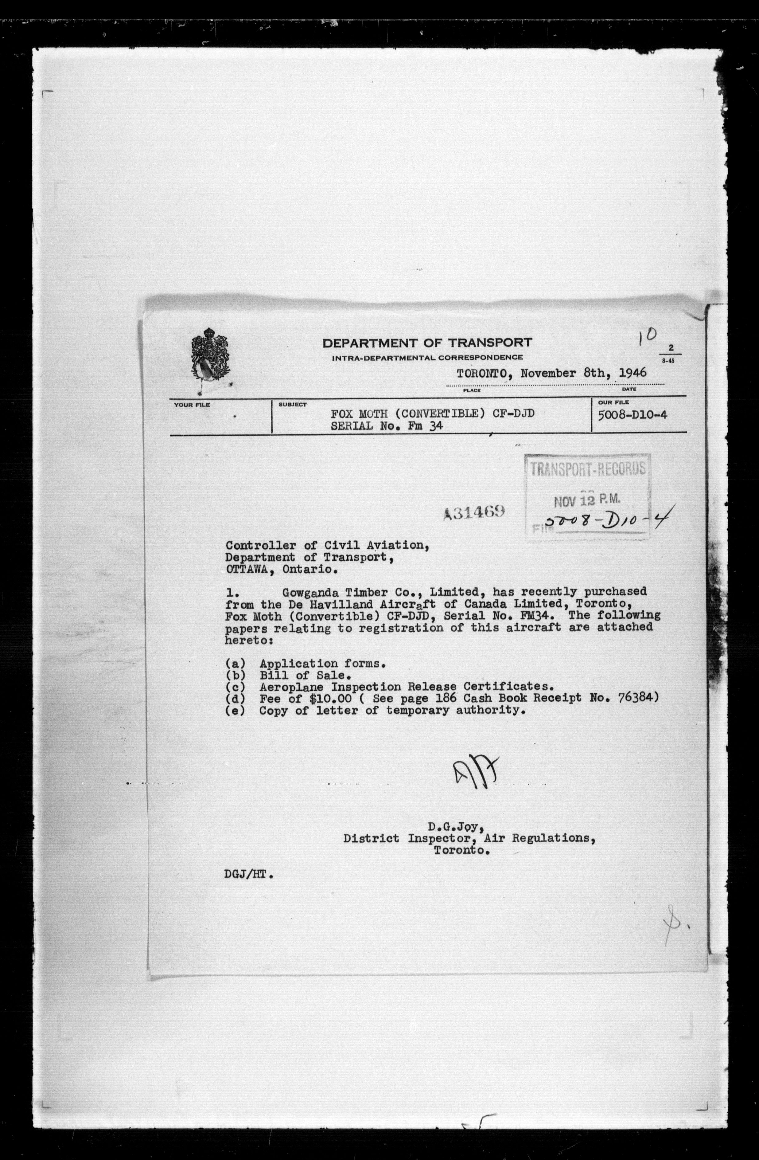 Department of Transport : Civil aircraft registration, inspection and operation files, block 5008, 1920-1986 - 7525