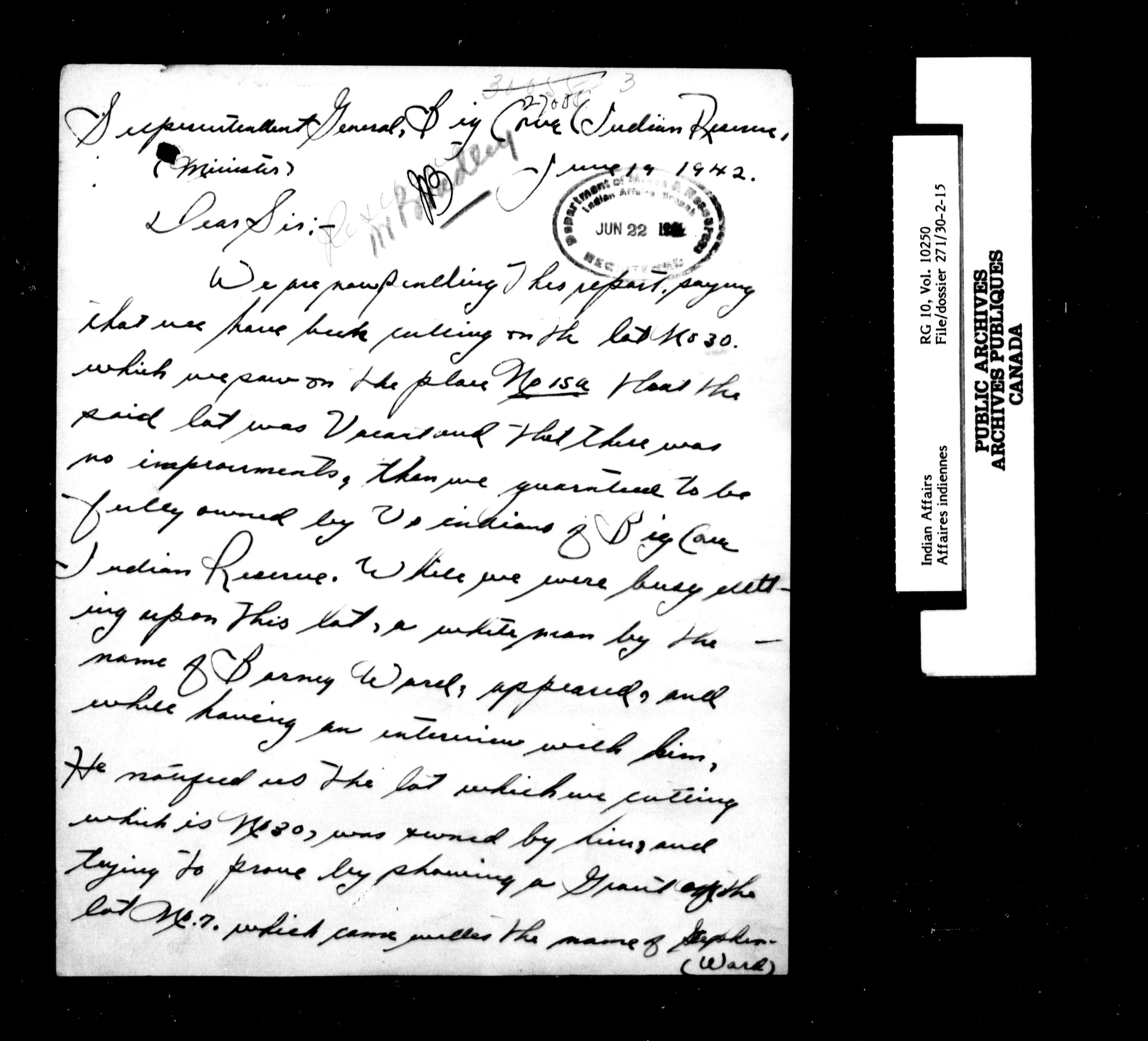 Department of Indian Affairs : Central Registry File - 7549