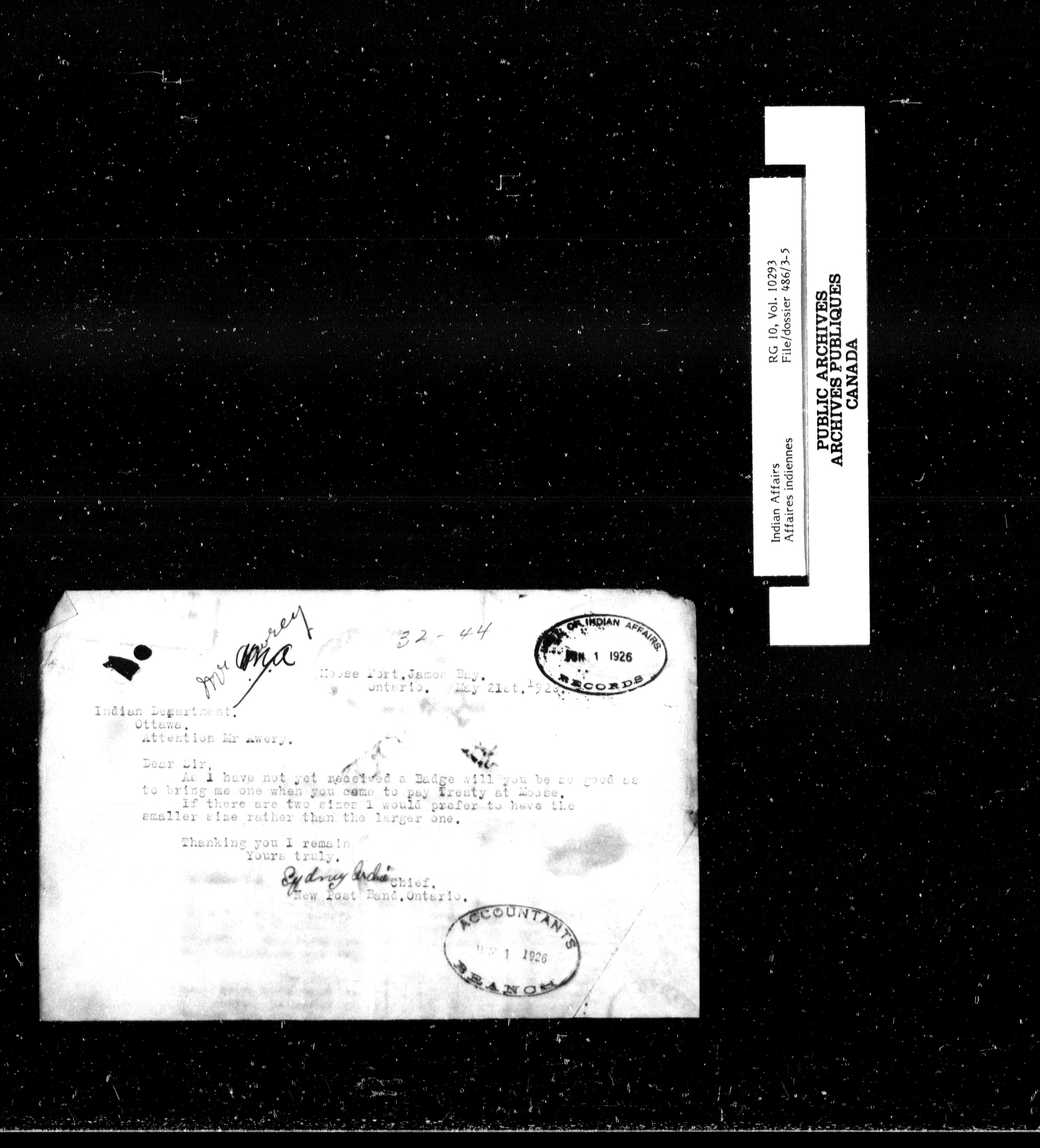 Department of Indian Affairs : Central Registry File - 7573