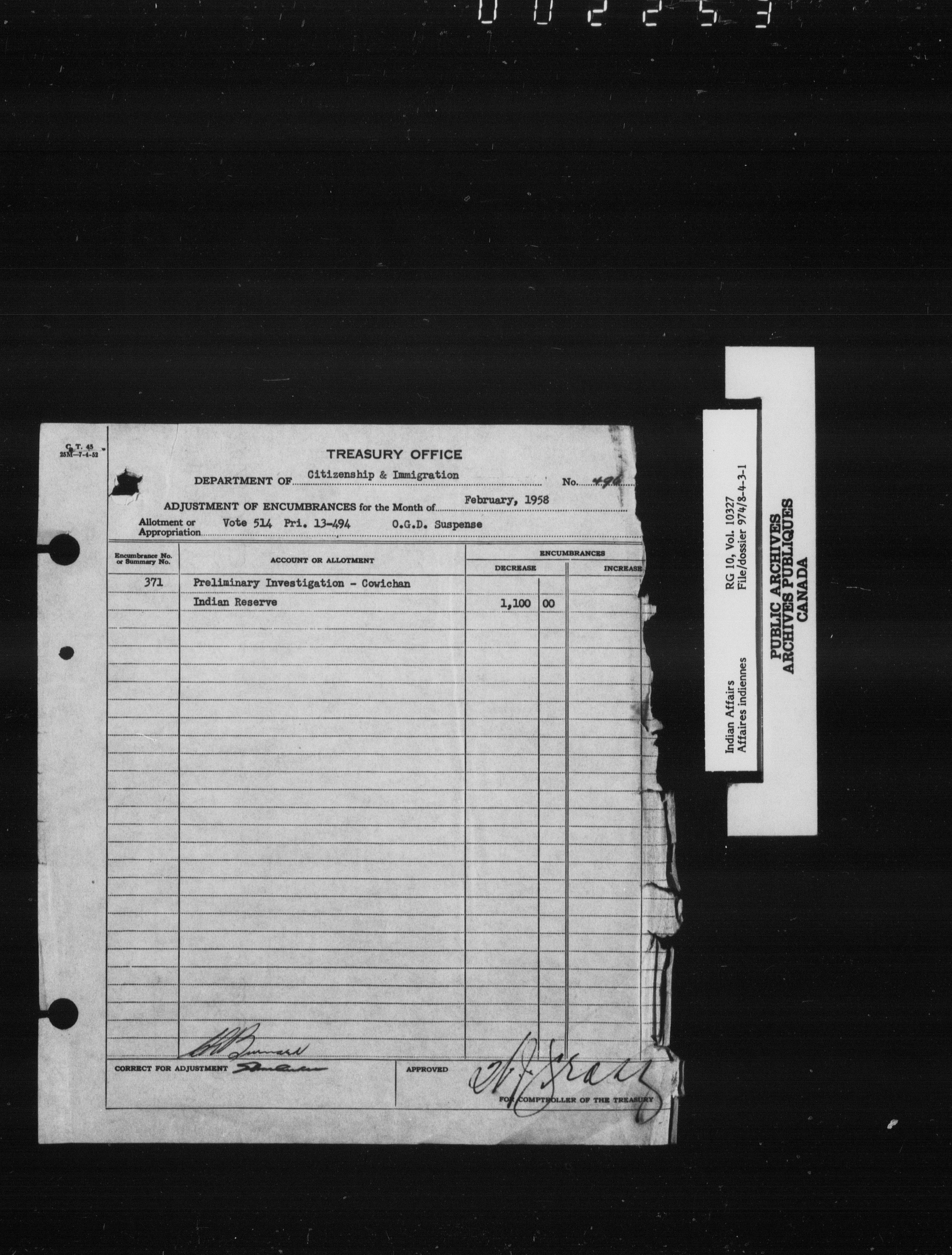 Indian and Inuit Affairs Program : Modified duplex numeric system - 7594