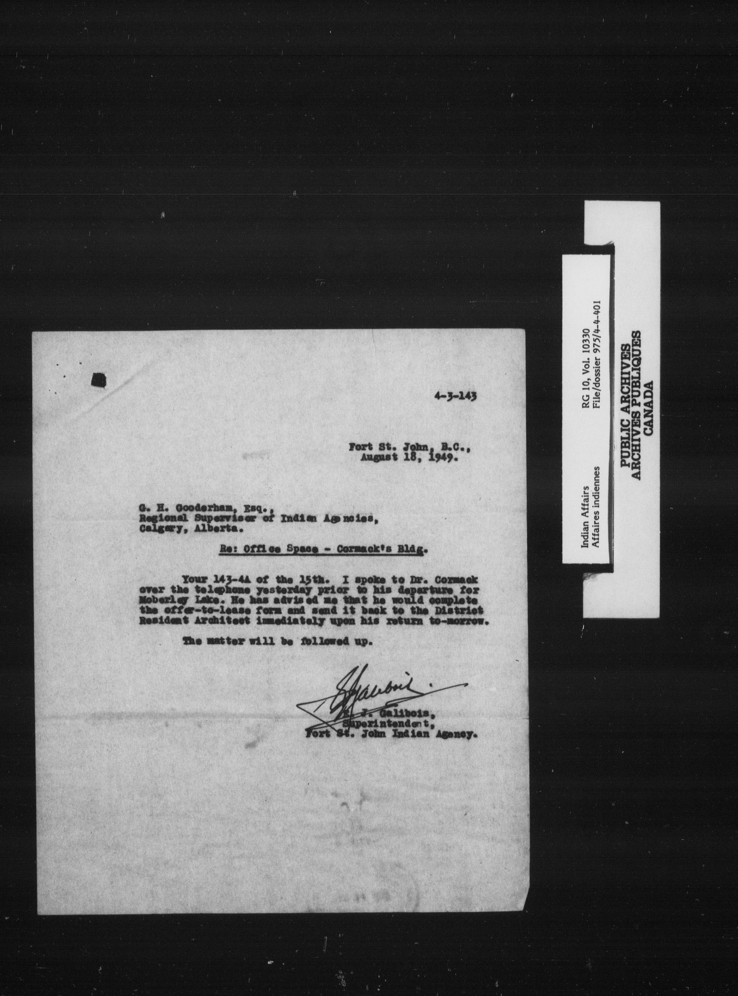 Indian and Inuit Affairs Program : Modified duplex numeric system - 7596