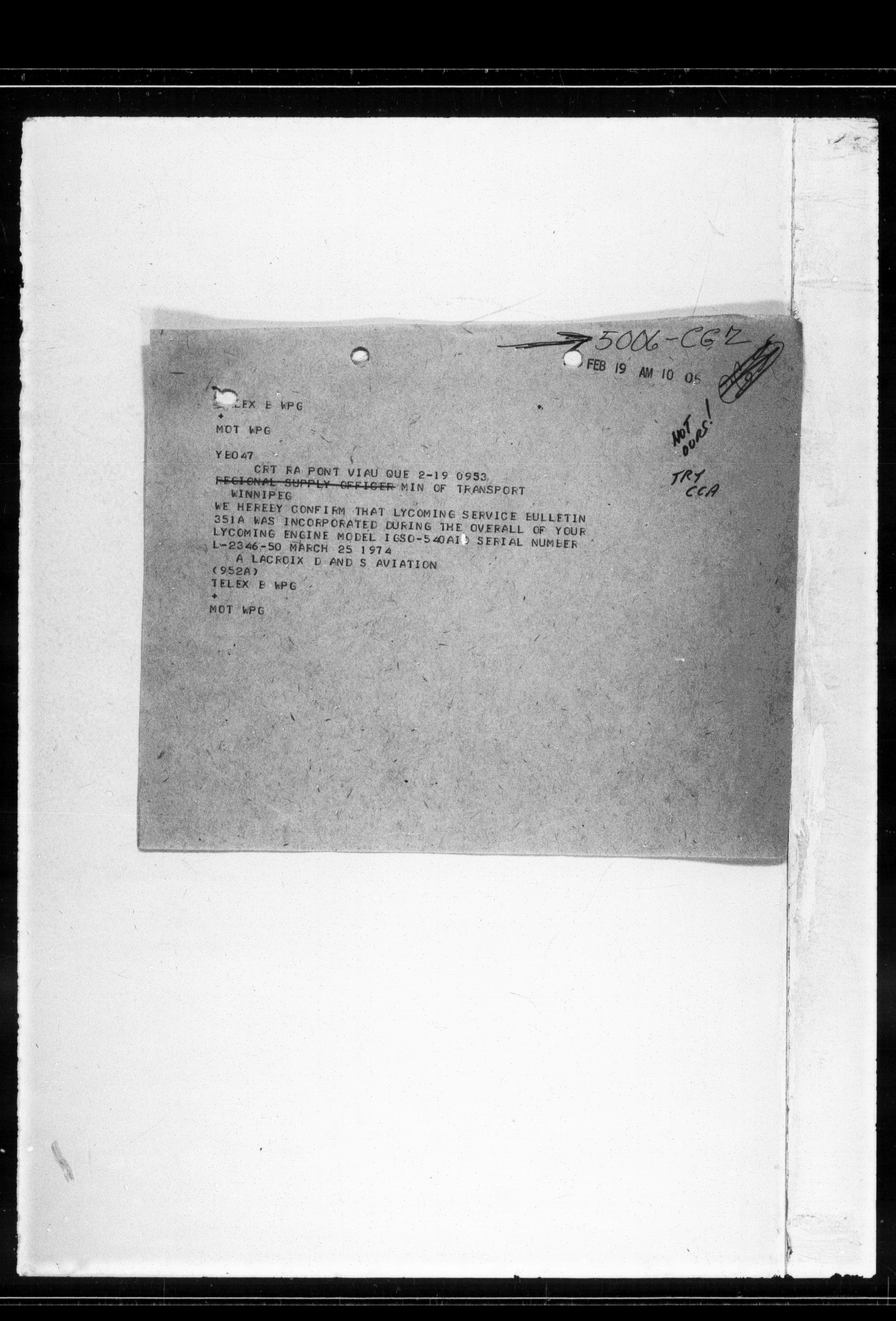 Department of Transport : Civil aircraft registration, inspection and operation files, block 5008, 1920-1986 - 7622