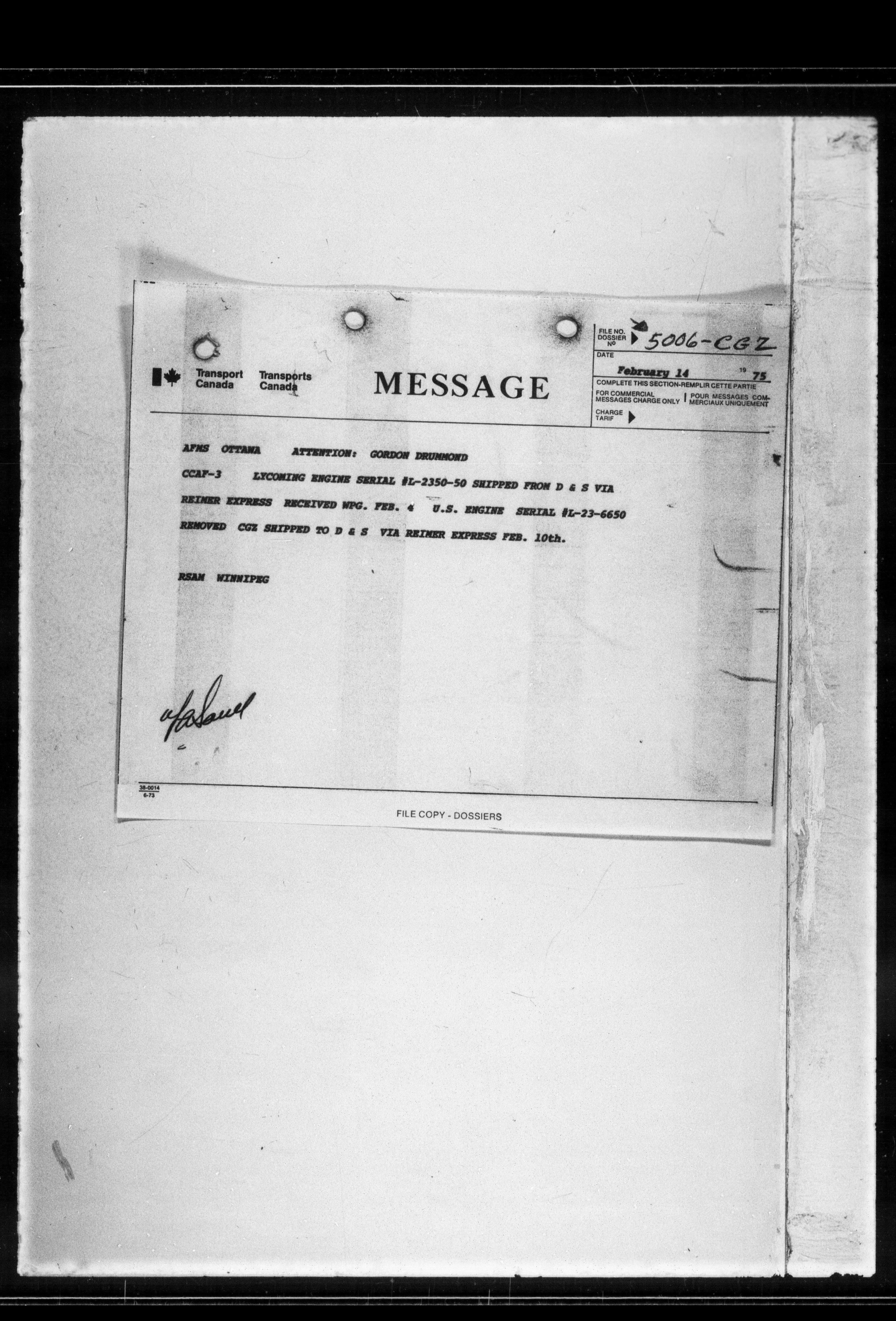 Department of Transport : Civil aircraft registration, inspection and operation files, block 5008, 1920-1986 - 7622