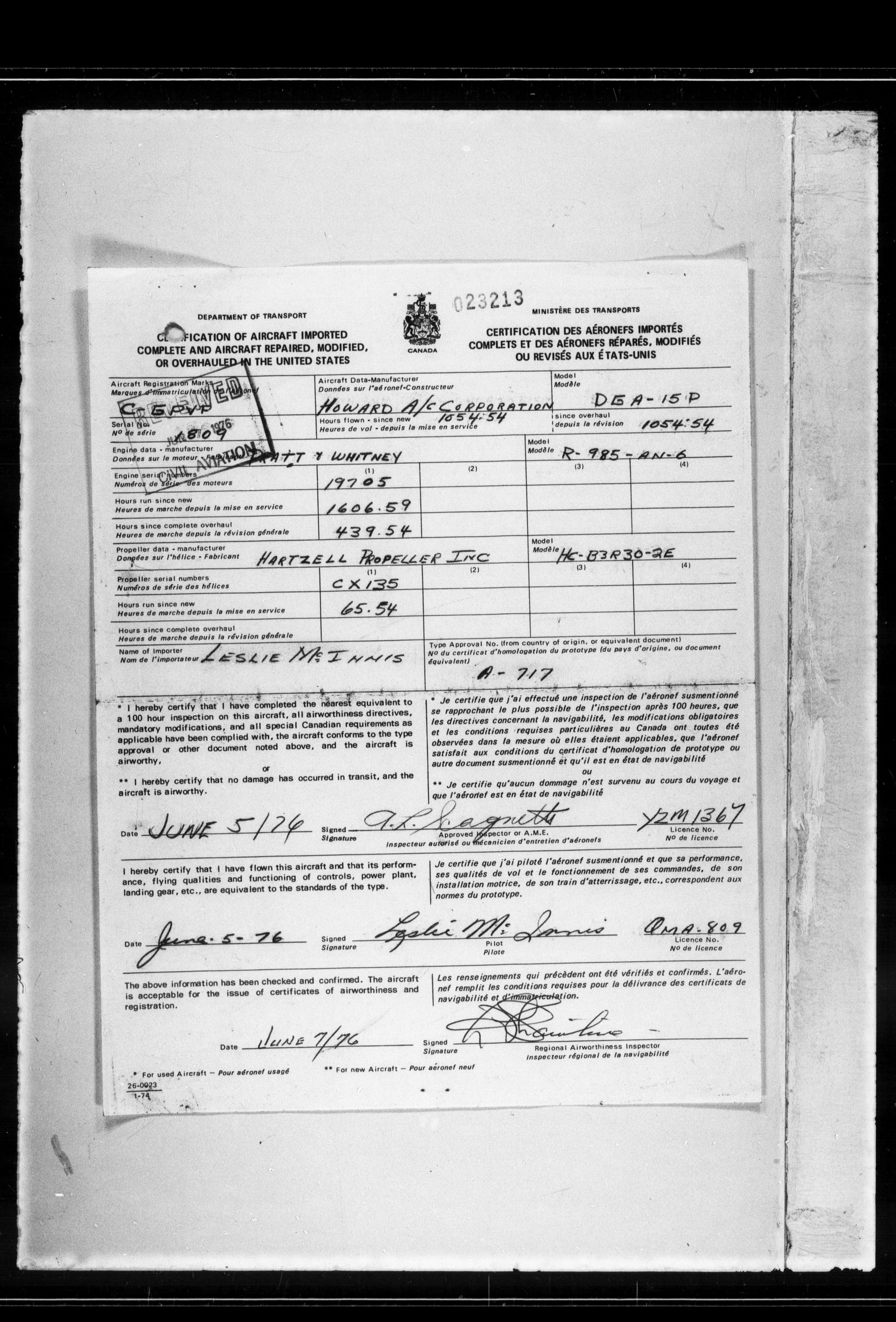 Department of Transport : Civil aircraft registration, inspection and operation files, block 5008, 1920-1986 - 7622