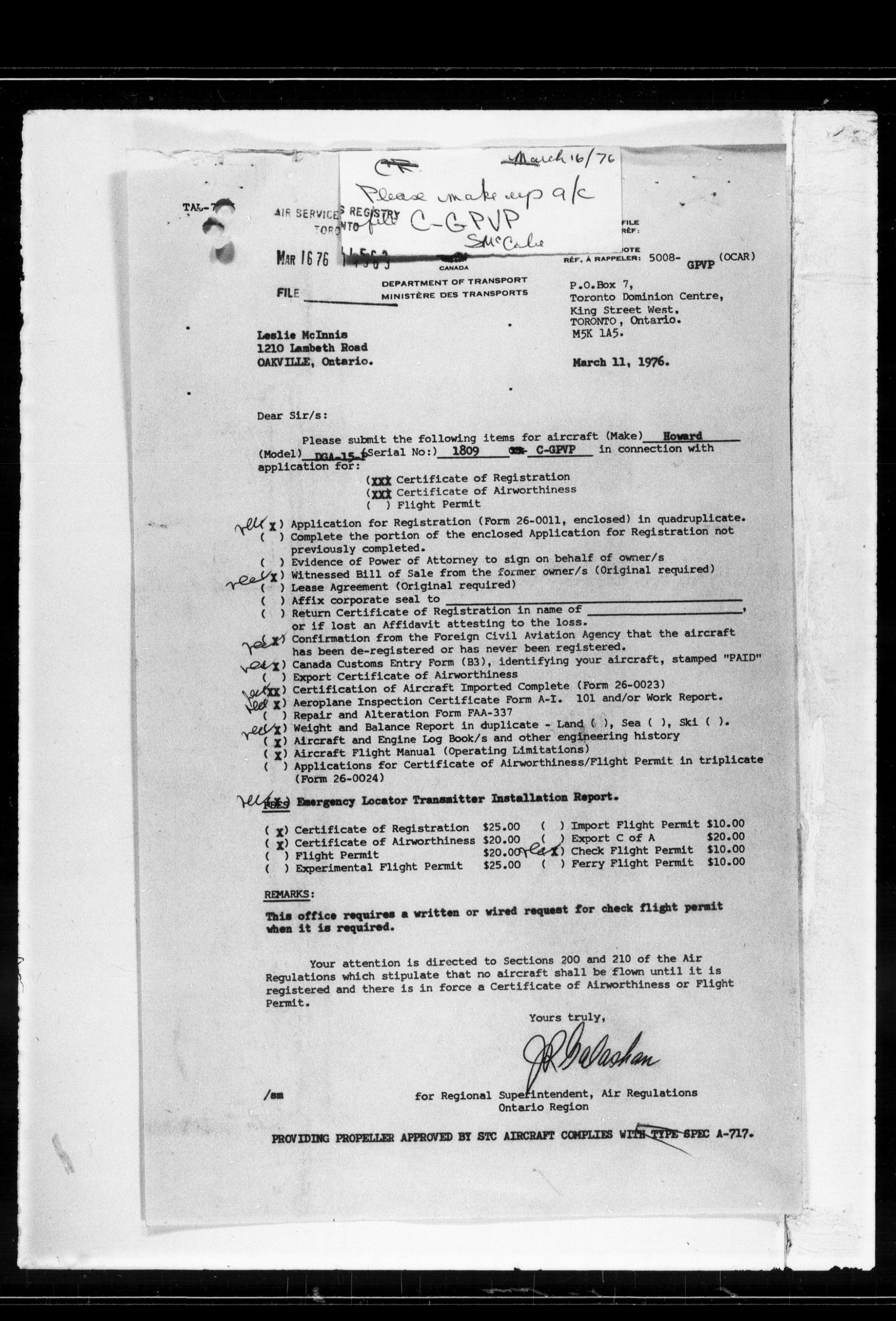 Department of Transport : Civil aircraft registration, inspection and operation files, block 5008, 1920-1986 - 7622
