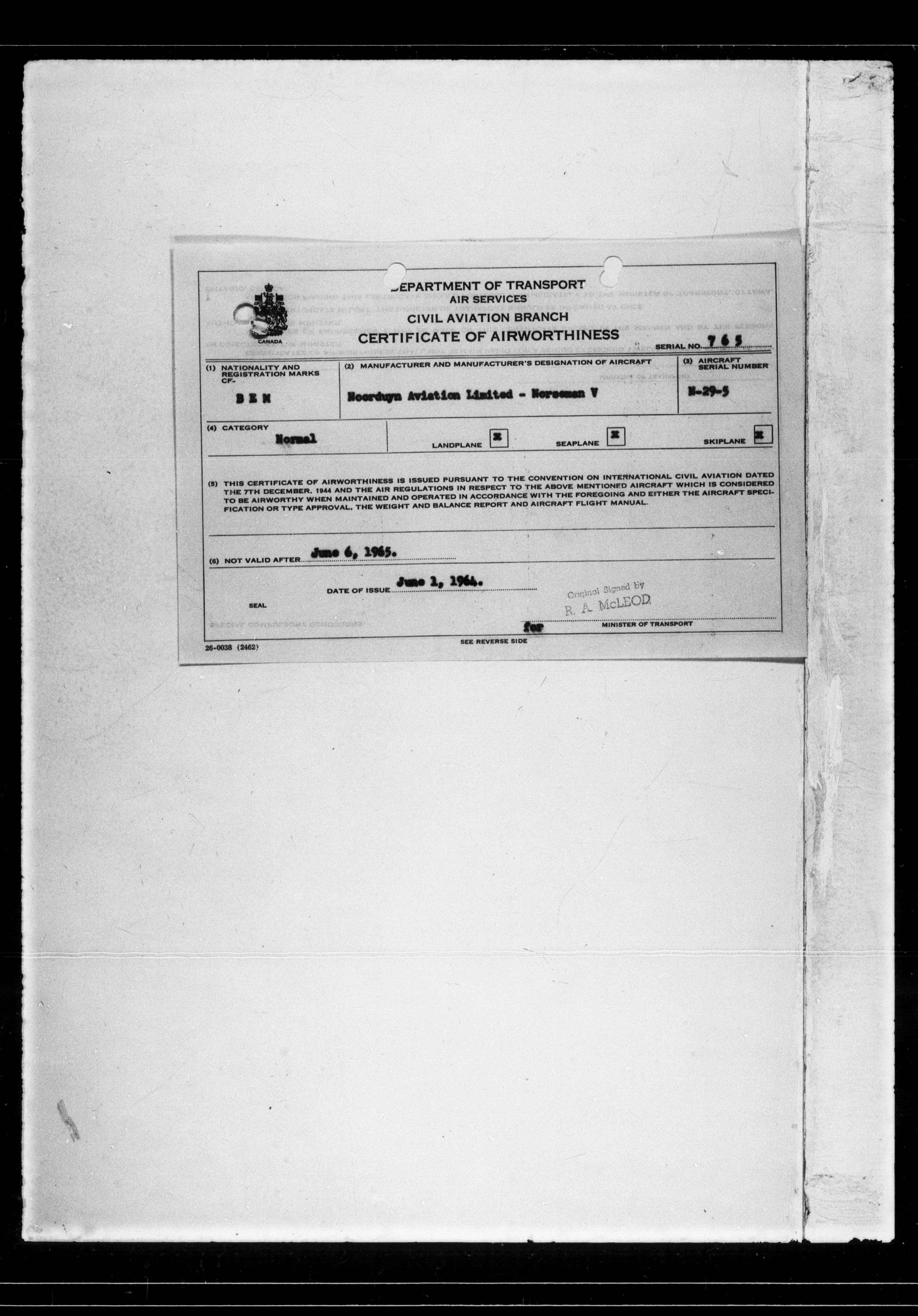 Department of Transport : Civil aircraft registration, inspection and operation files, block 5008, 1920-1986 - 7624