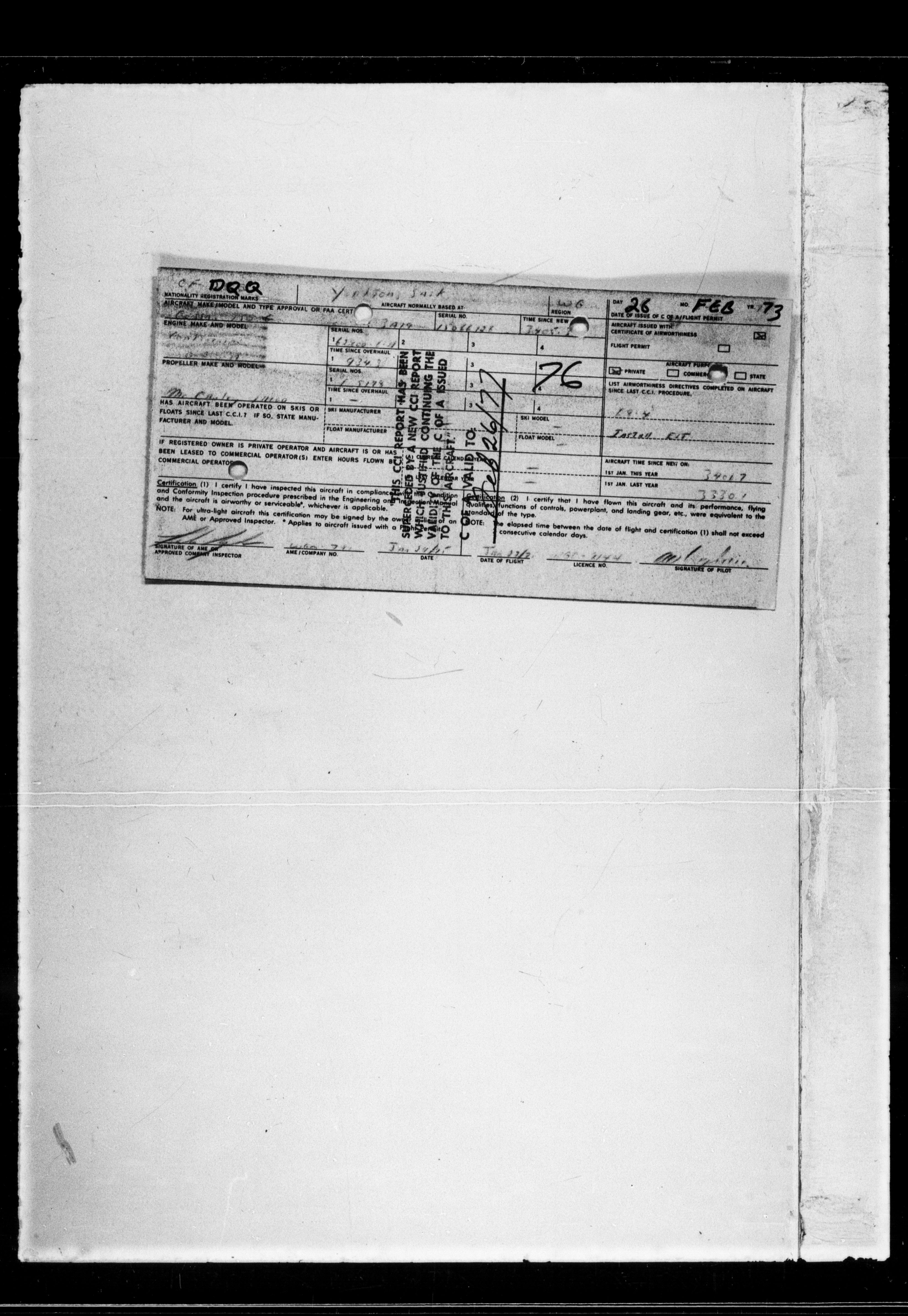 Department of Transport : Civil aircraft registration, inspection and operation files, block 5008, 1920-1986 - 7625