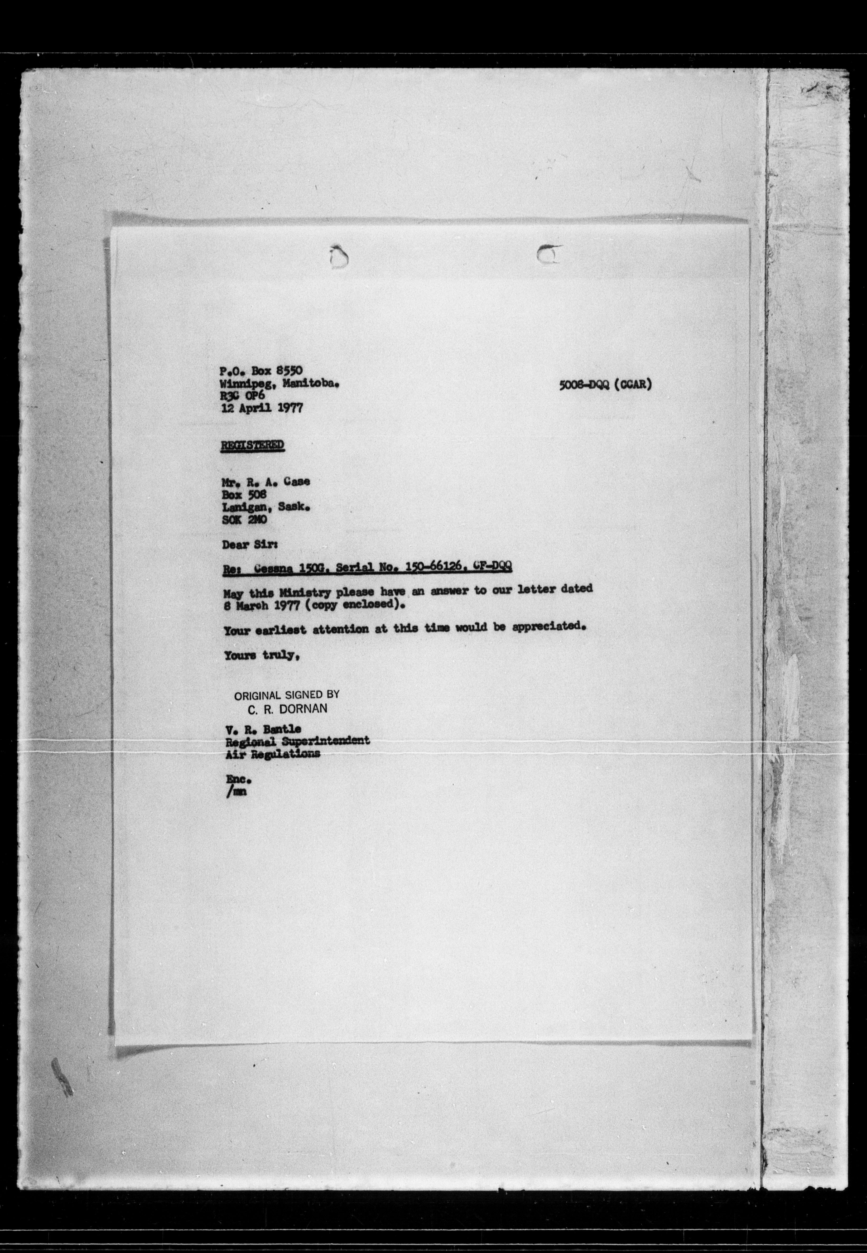 Department of Transport : Civil aircraft registration, inspection and operation files, block 5008, 1920-1986 - 7625