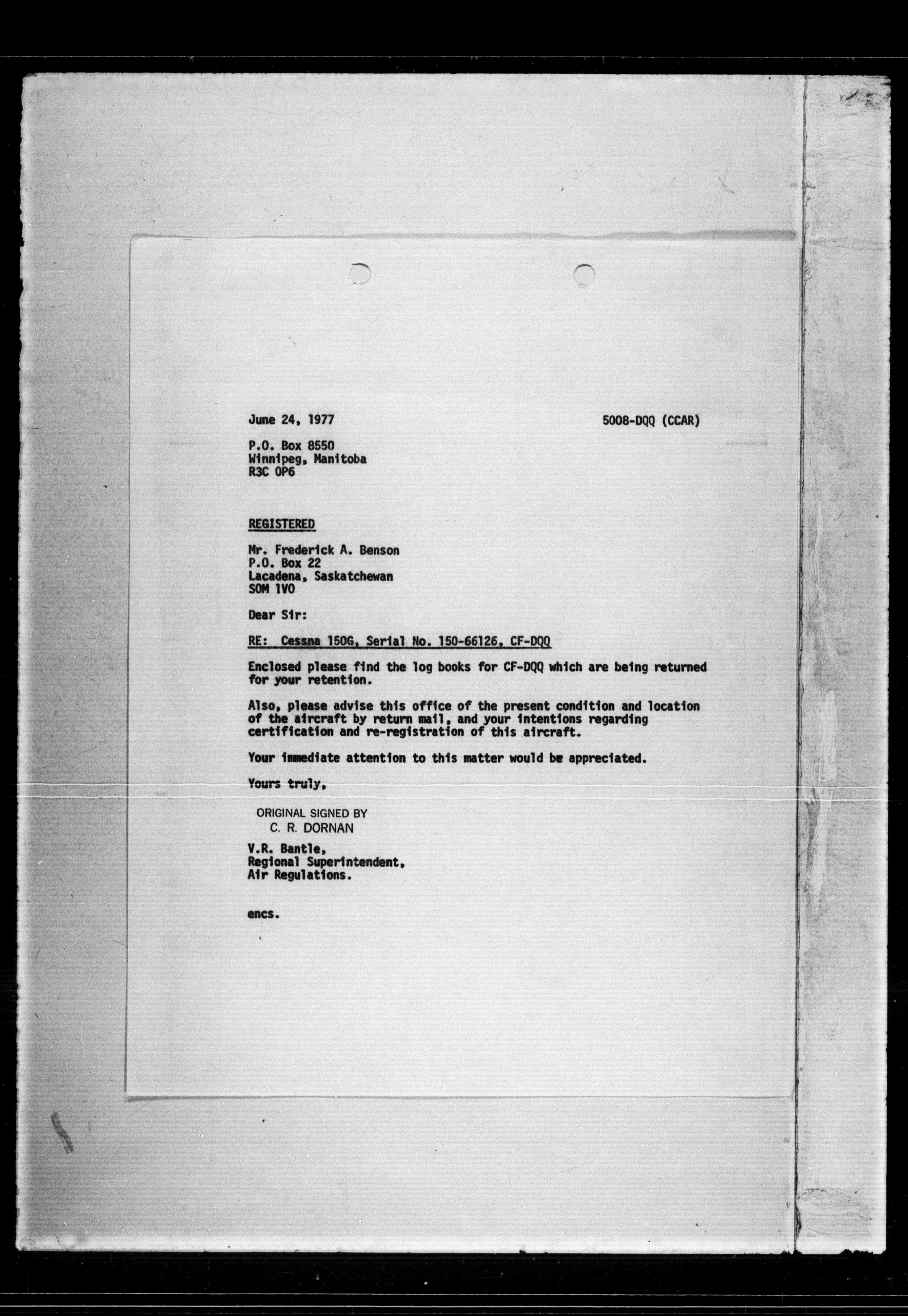 Department of Transport : Civil aircraft registration, inspection and operation files, block 5008, 1920-1986 - 7625