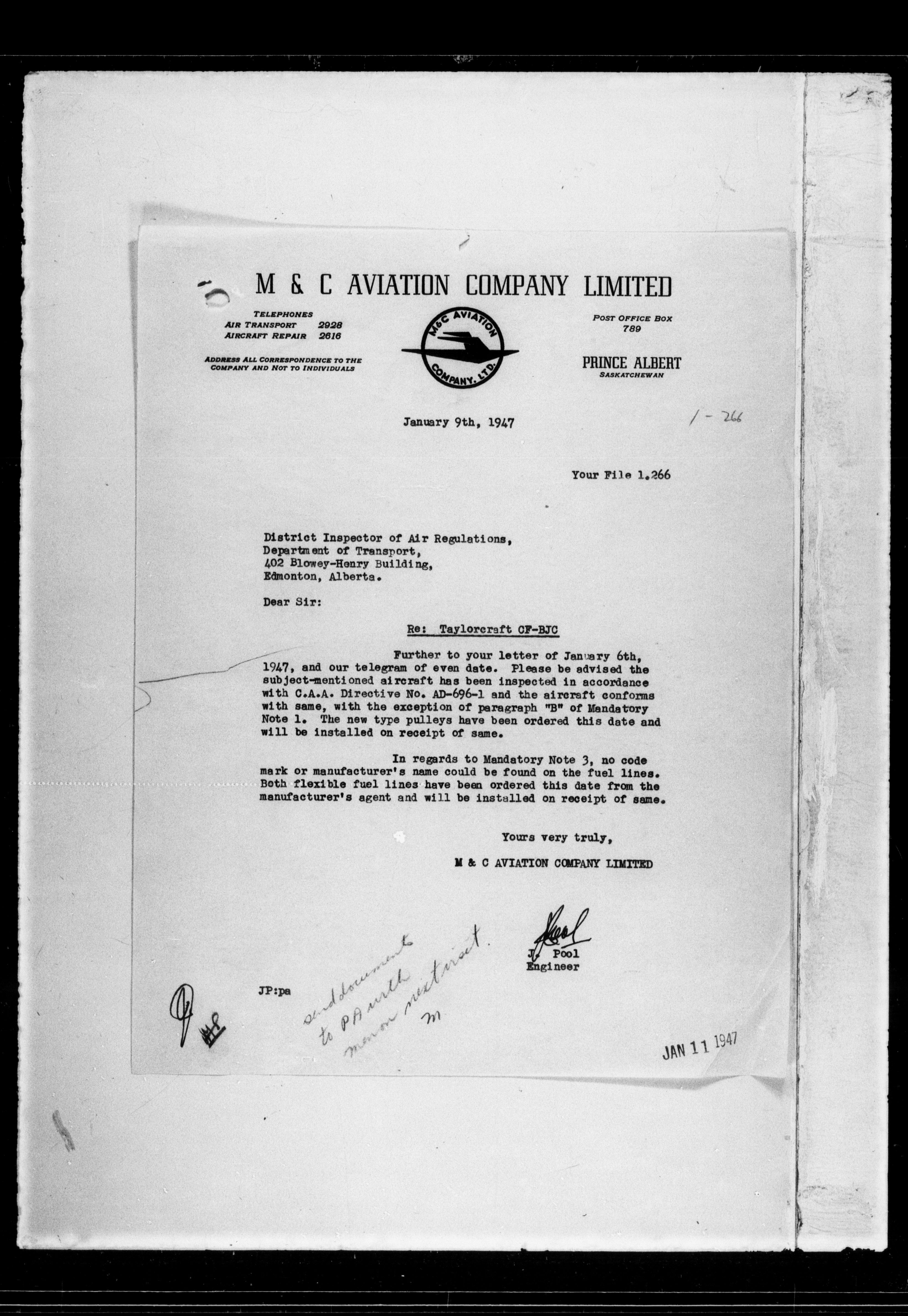 Department of Transport : Civil aircraft registration, inspection and operation files, block 5008, 1920-1986 - 7625