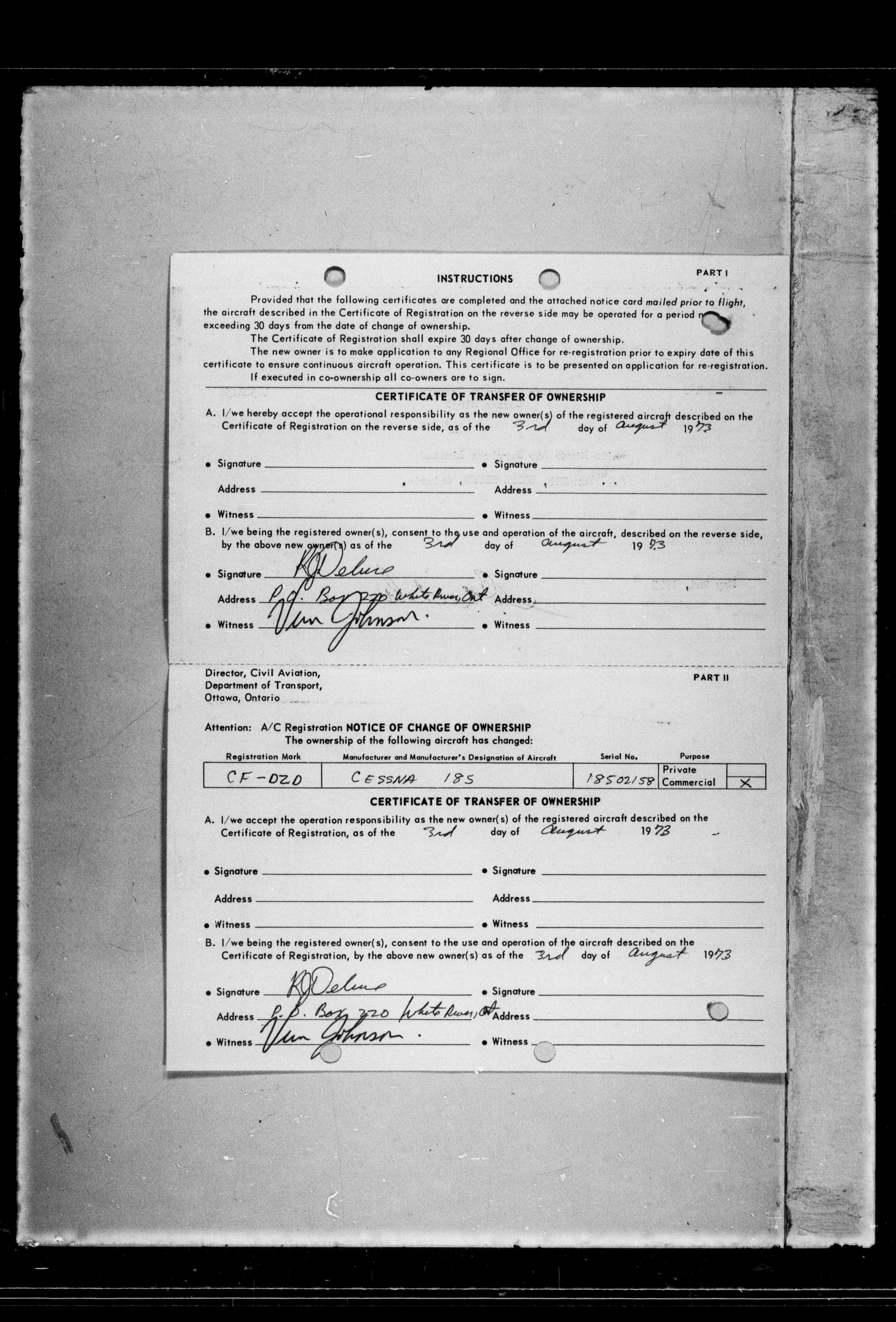 Department of Transport : Civil aircraft registration, inspection and operation files, block 5008, 1920-1986 - 7626