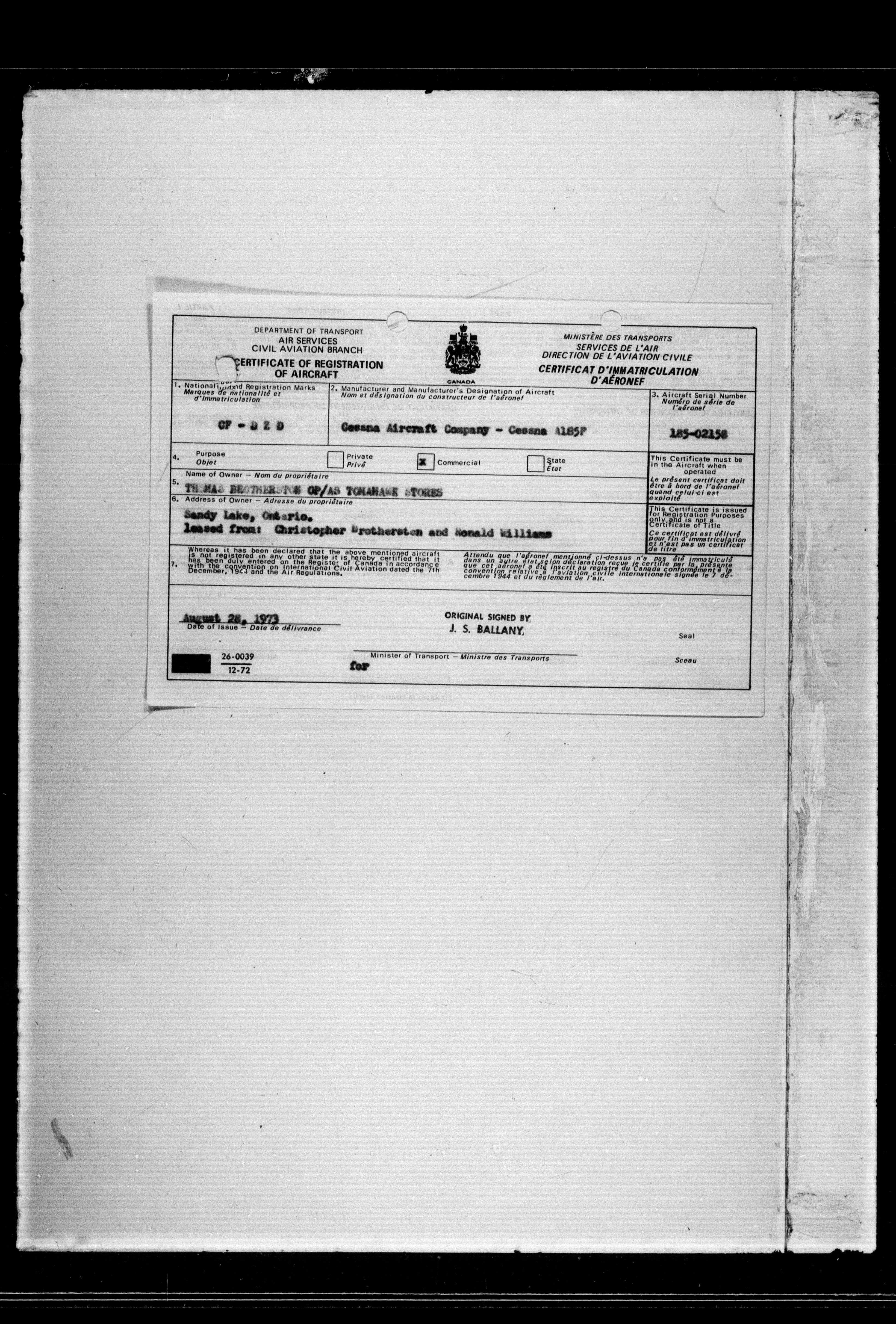 Department of Transport : Civil aircraft registration, inspection and operation files, block 5008, 1920-1986 - 7626
