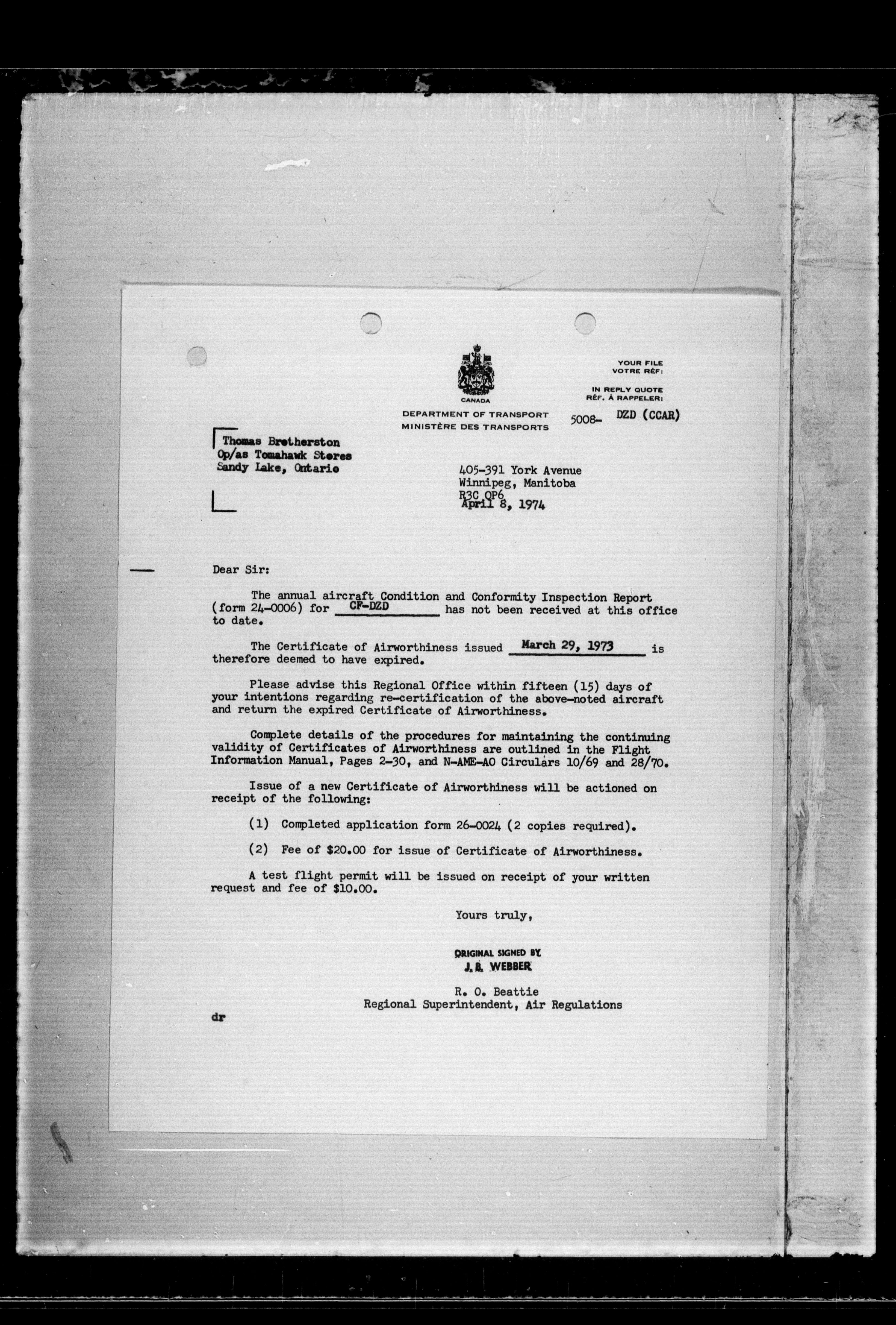 Department of Transport : Civil aircraft registration, inspection and operation files, block 5008, 1920-1986 - 7626