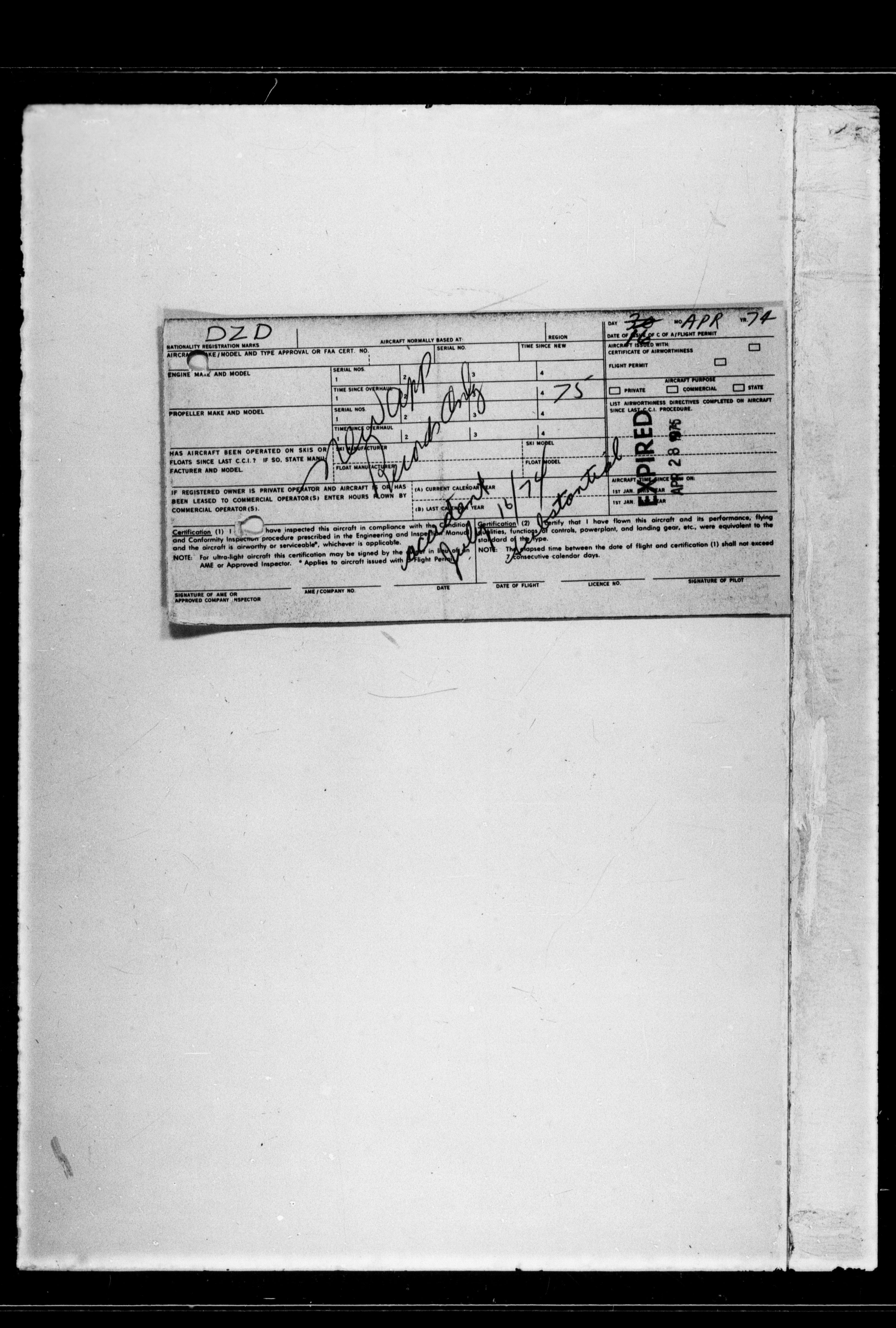 Department of Transport : Civil aircraft registration, inspection and operation files, block 5008, 1920-1986 - 7626