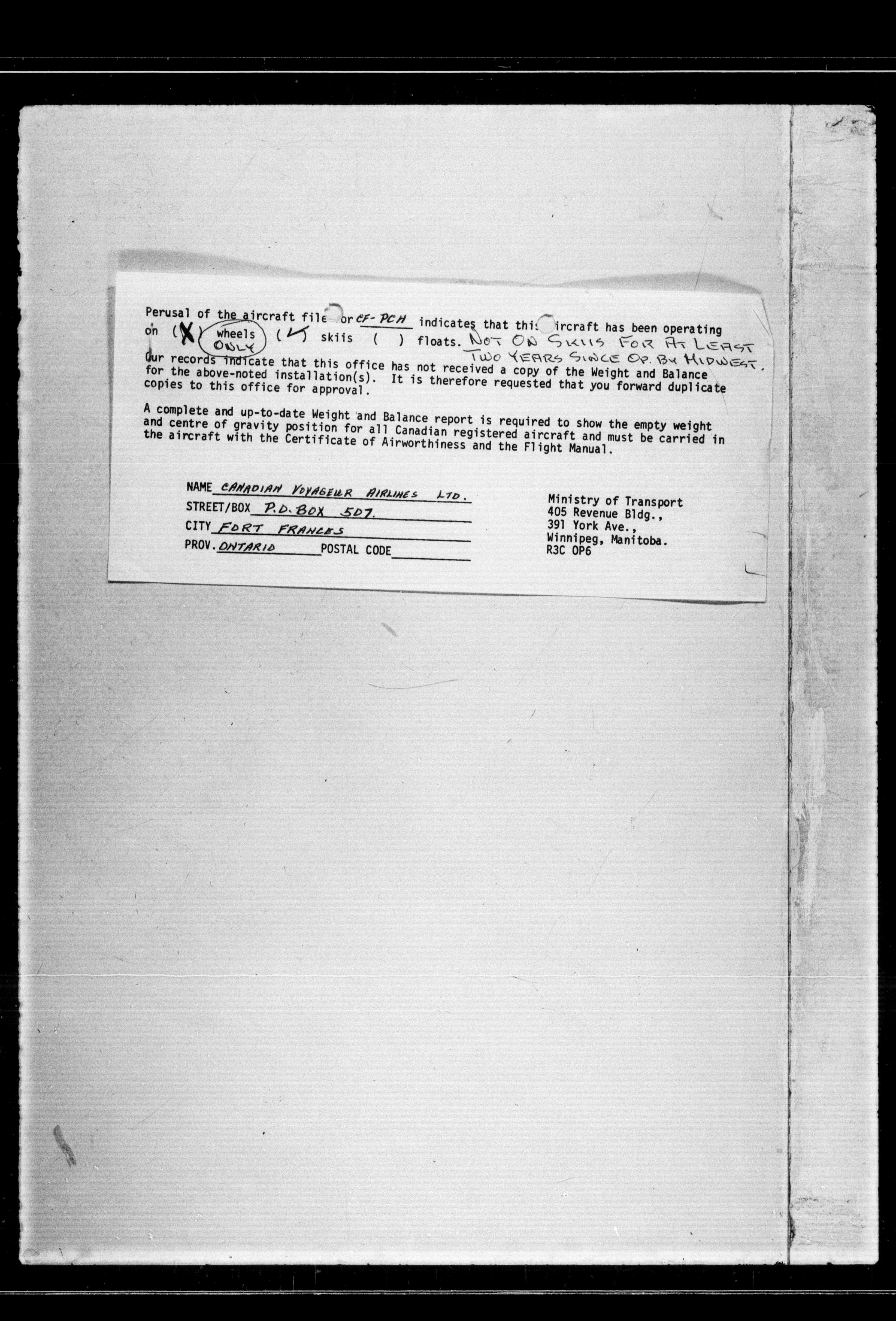 Department of Transport : Civil aircraft registration, inspection and operation files, block 5008, 1920-1986 - 7633