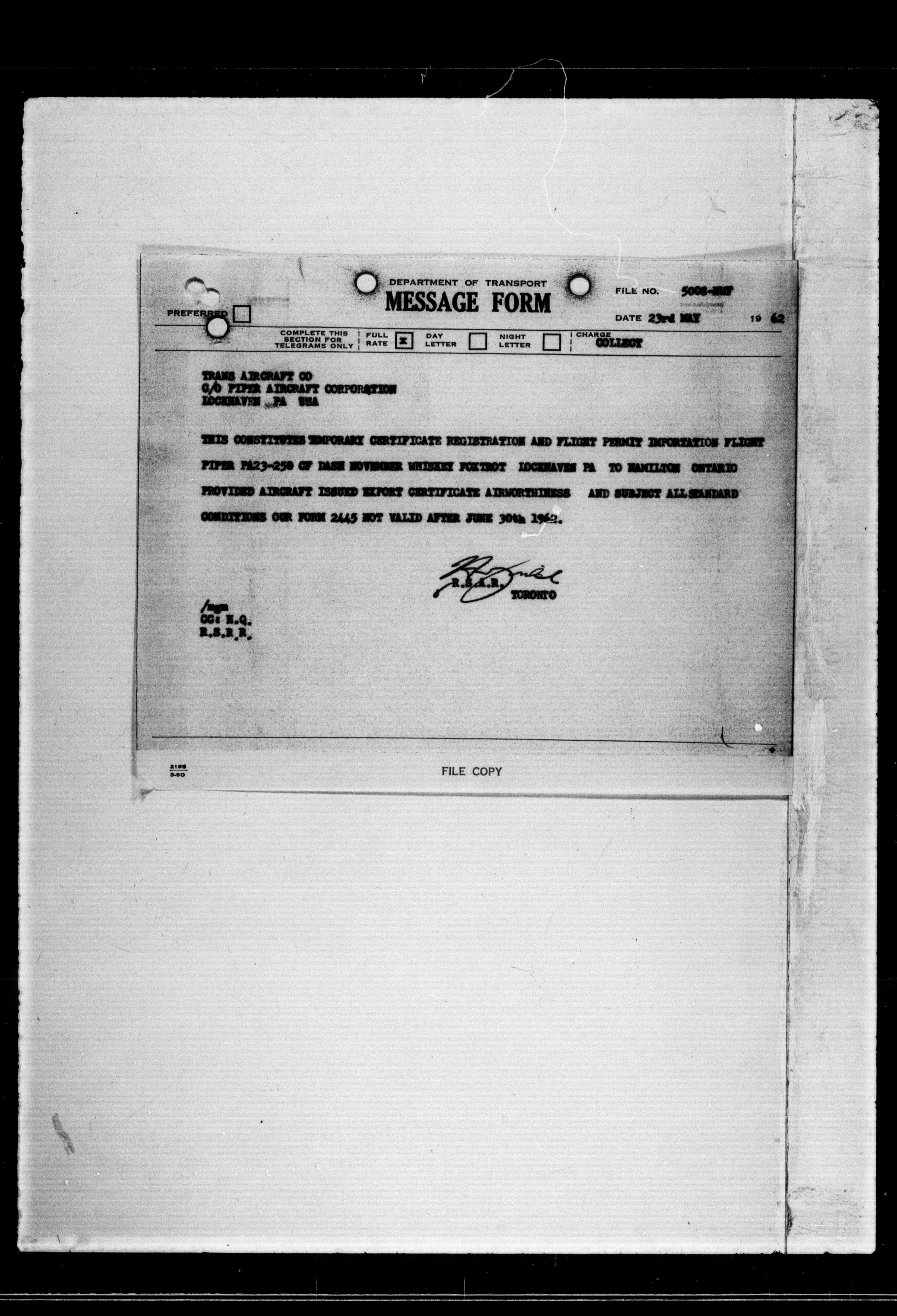 Department of Transport : Civil aircraft registration, inspection and operation files, block 5008, 1920-1986 - 7633