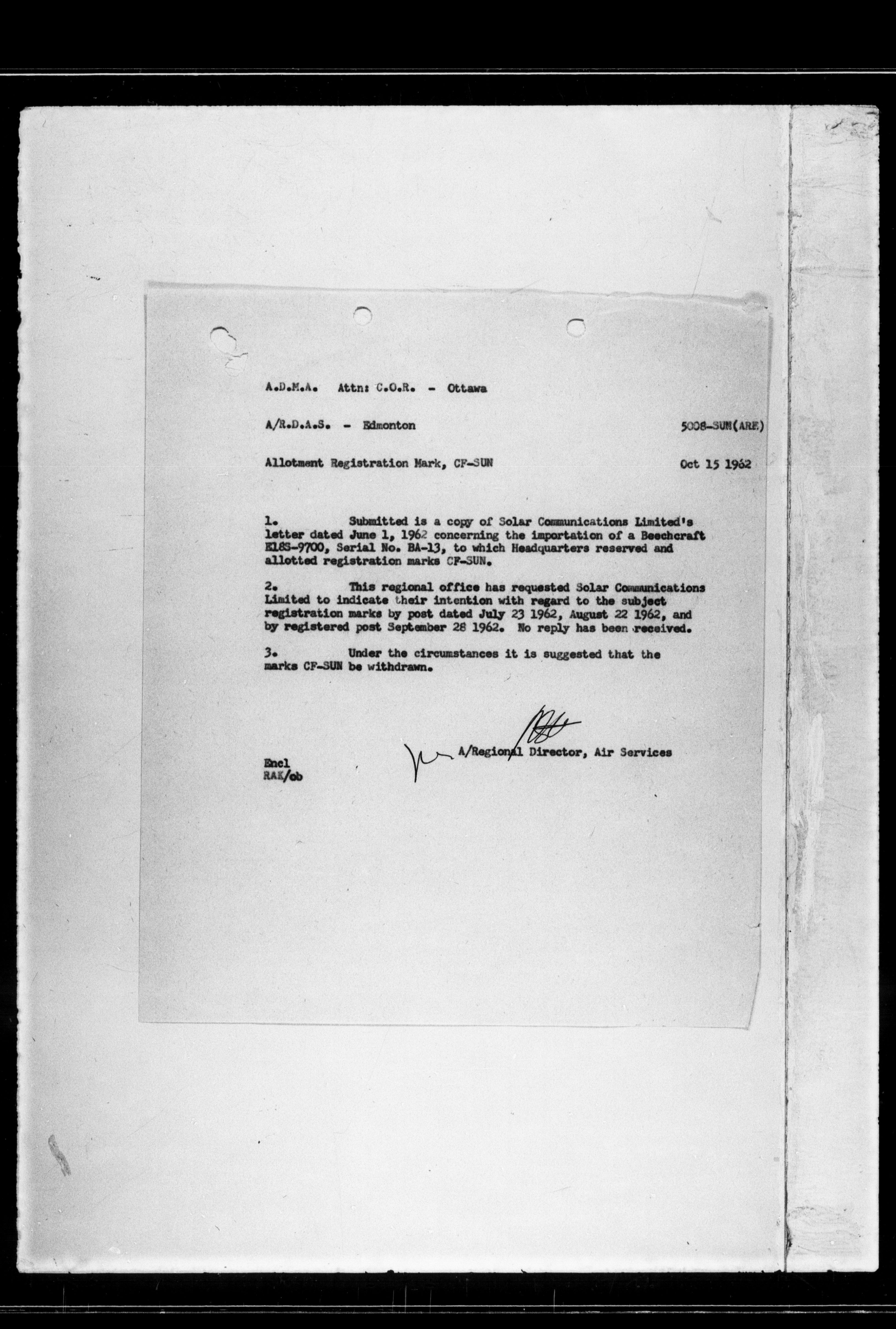 Department of Transport : Civil aircraft registration, inspection and operation files, block 5008, 1920-1986 - 7637