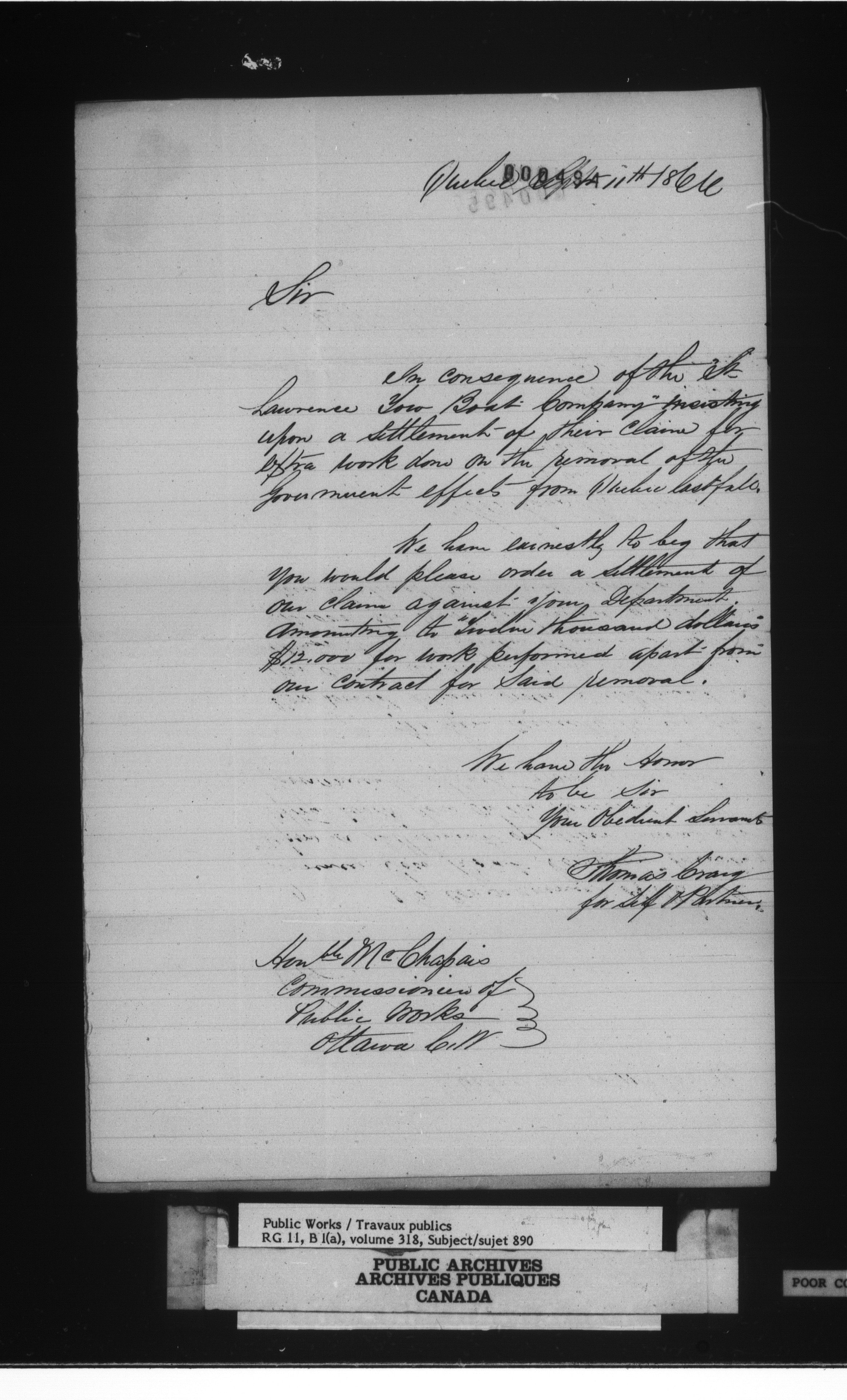 Department of Public Works : registered correspondence, 1859-1879 - 764