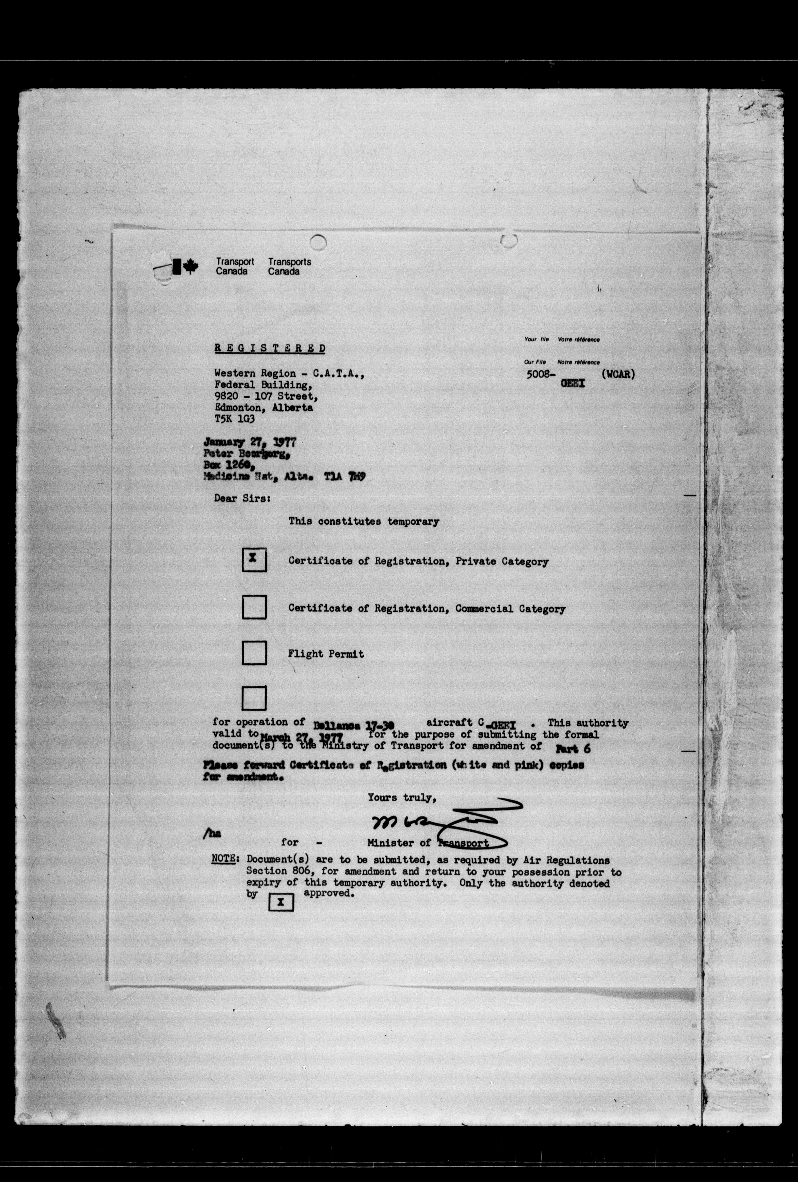 Department of Transport : Civil aircraft registration, inspection and operation files, block 5008, 1920-1986 - 7643