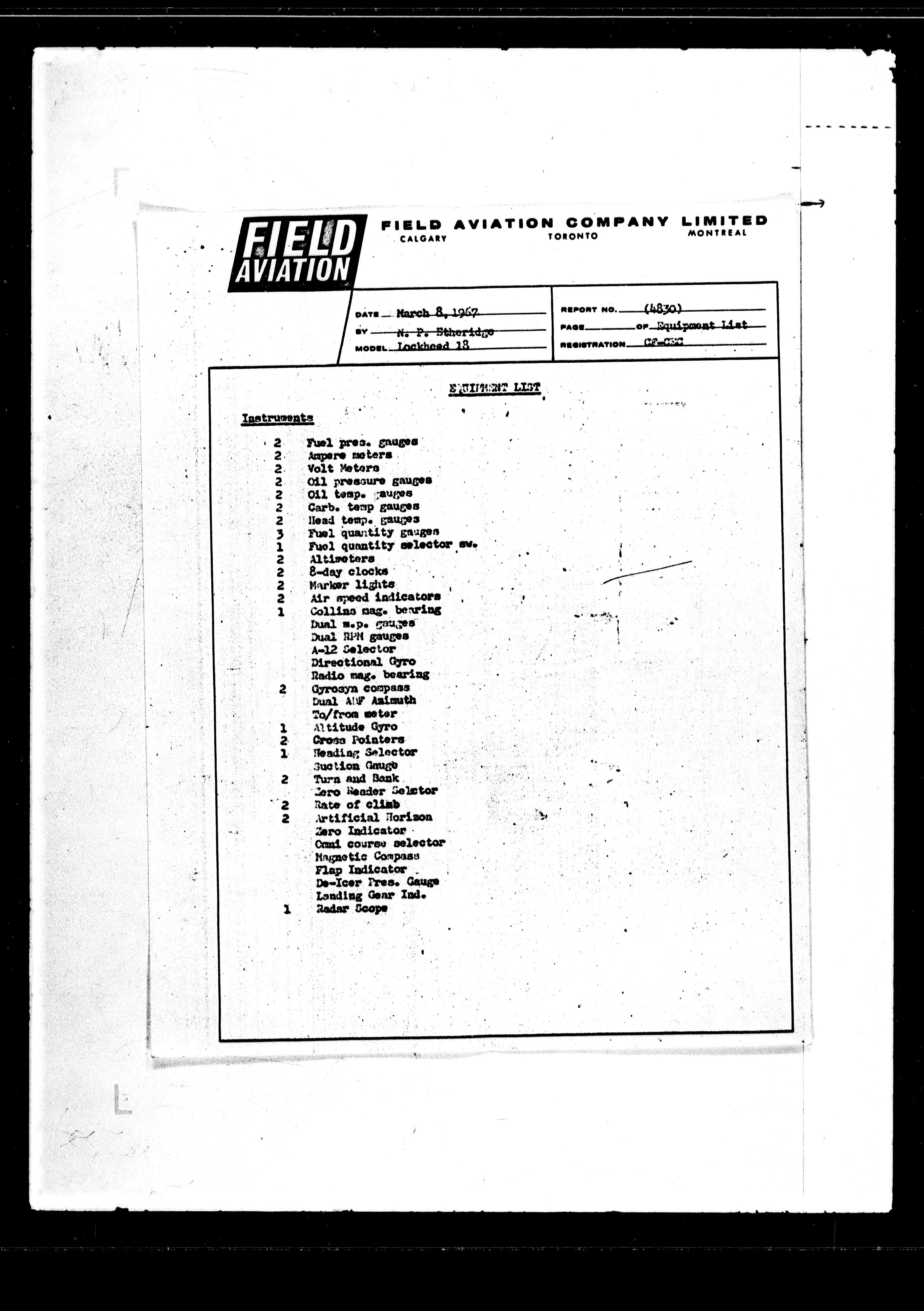 Department of Transport : Civil aircraft registration, inspection and operation files, block 5008, 1920-1986 - 7648