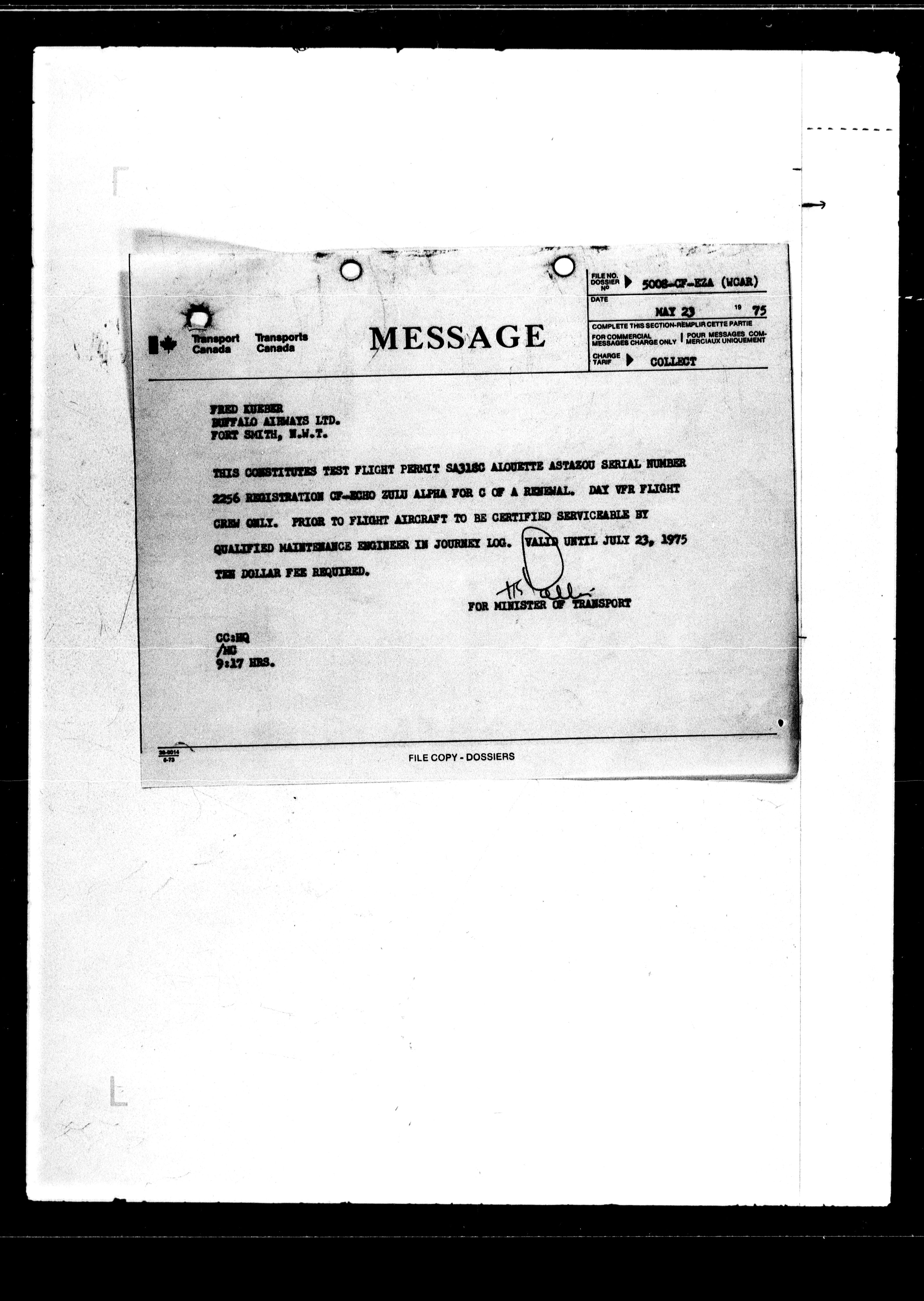 Department of Transport : Civil aircraft registration, inspection and operation files, block 5008, 1920-1986 - 7649