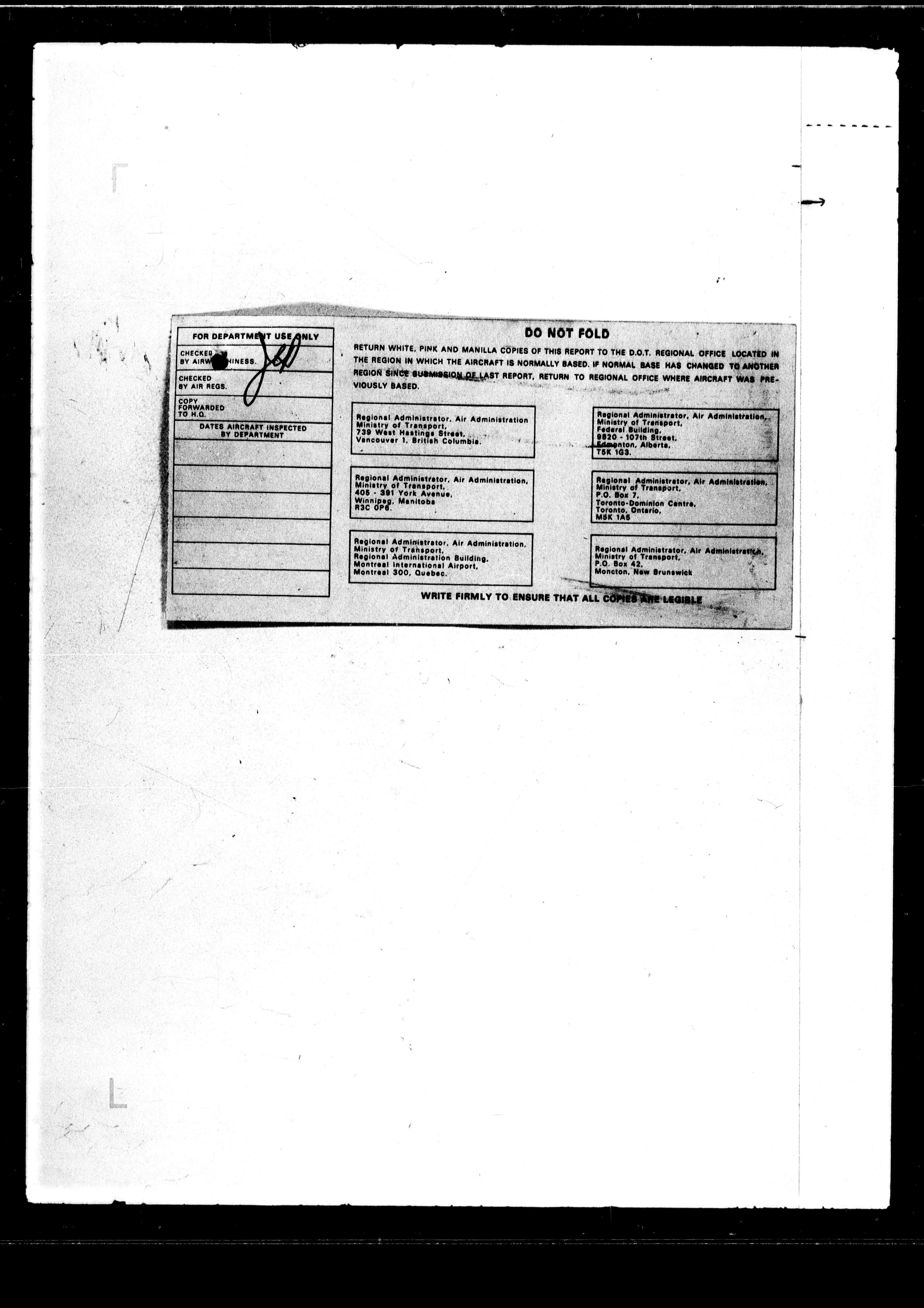 Department of Transport : Civil aircraft registration, inspection and operation files, block 5008, 1920-1986 - 7649