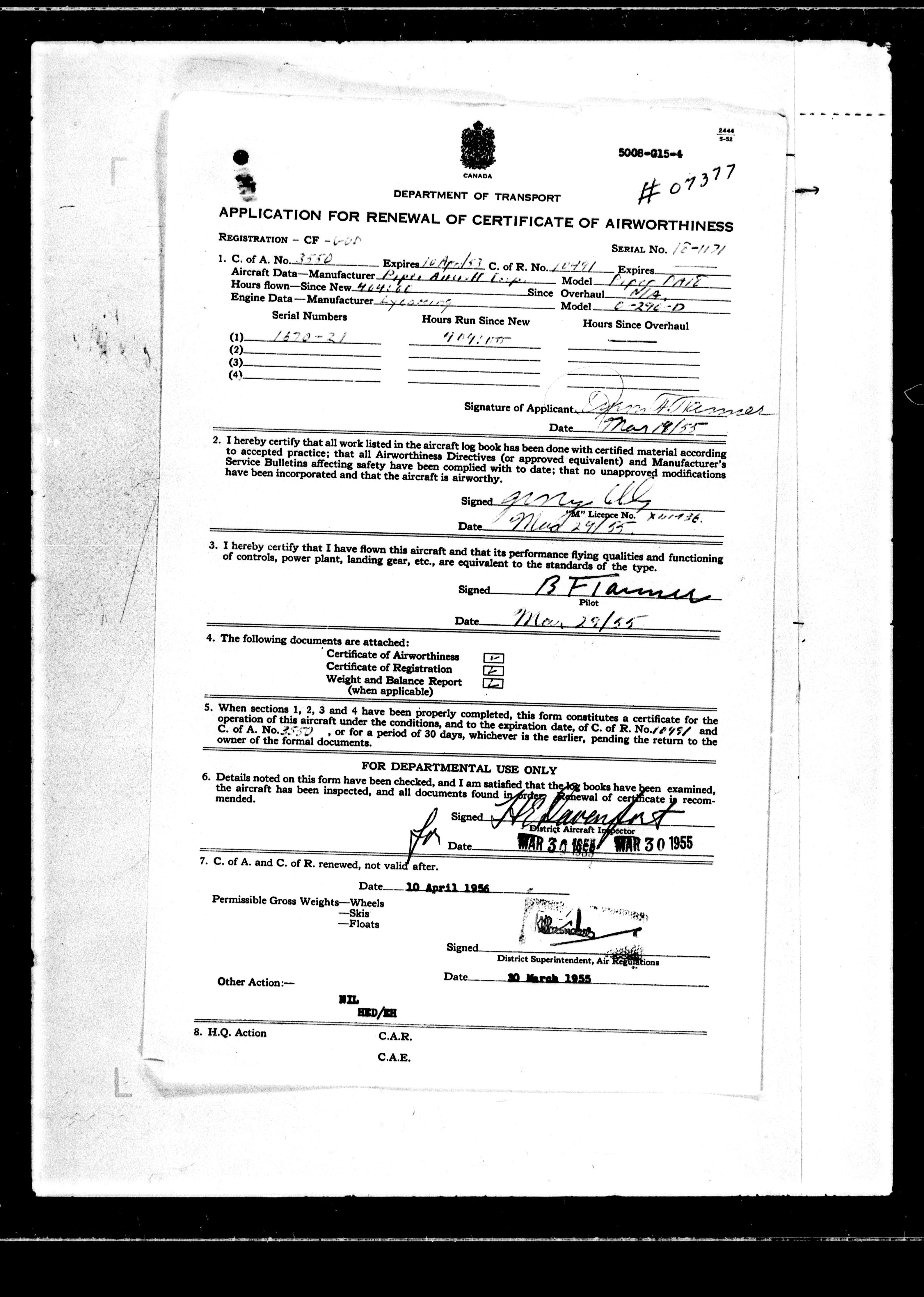 Department of Transport : Civil aircraft registration, inspection and operation files, block 5008, 1920-1986 - 7650