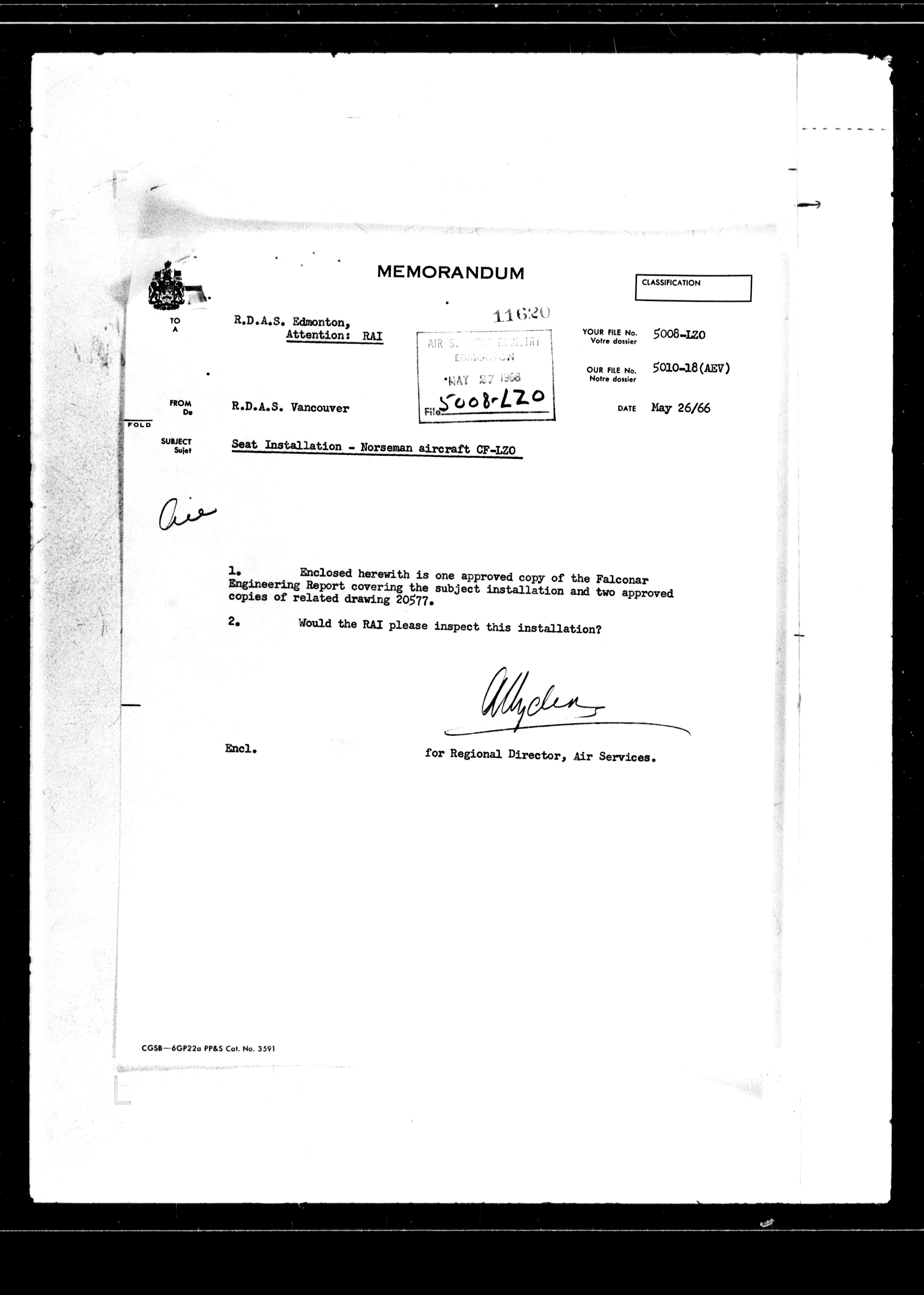 Department of Transport : Civil aircraft registration, inspection and operation files, block 5008, 1920-1986 - 7656
