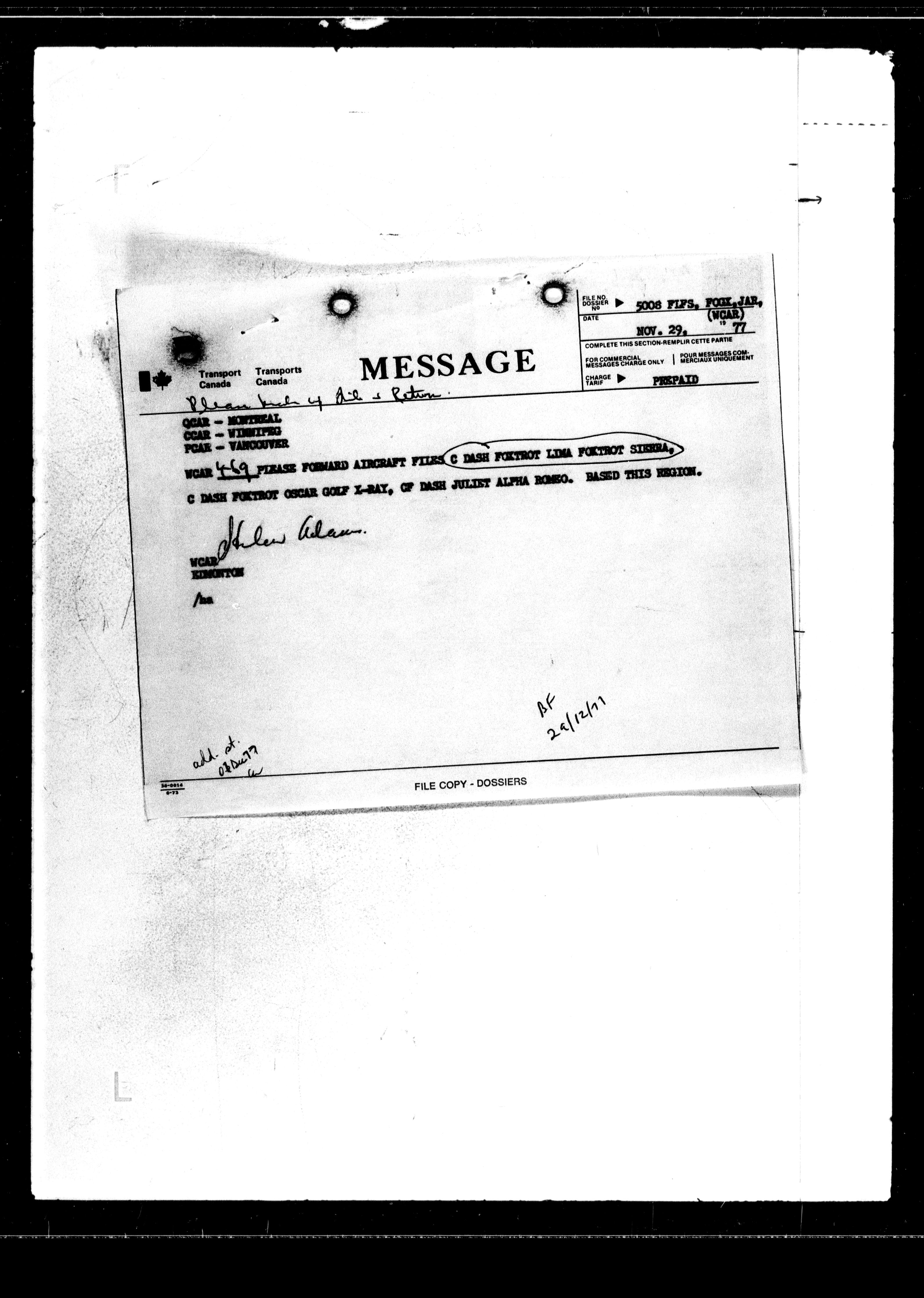 Department of Transport : Civil aircraft registration, inspection and operation files, block 5008, 1920-1986 - 7656