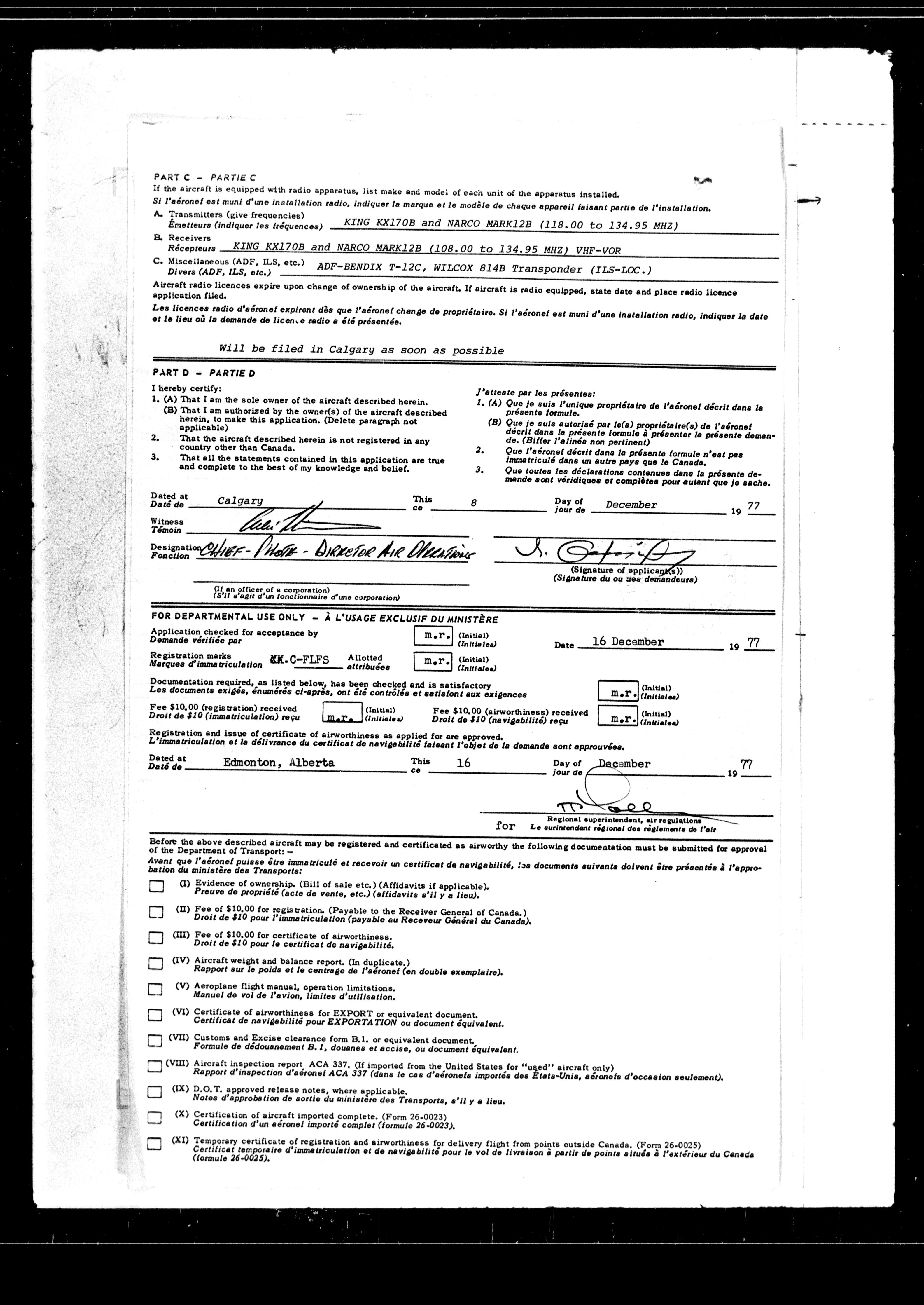 Department of Transport : Civil aircraft registration, inspection and operation files, block 5008, 1920-1986 - 7656