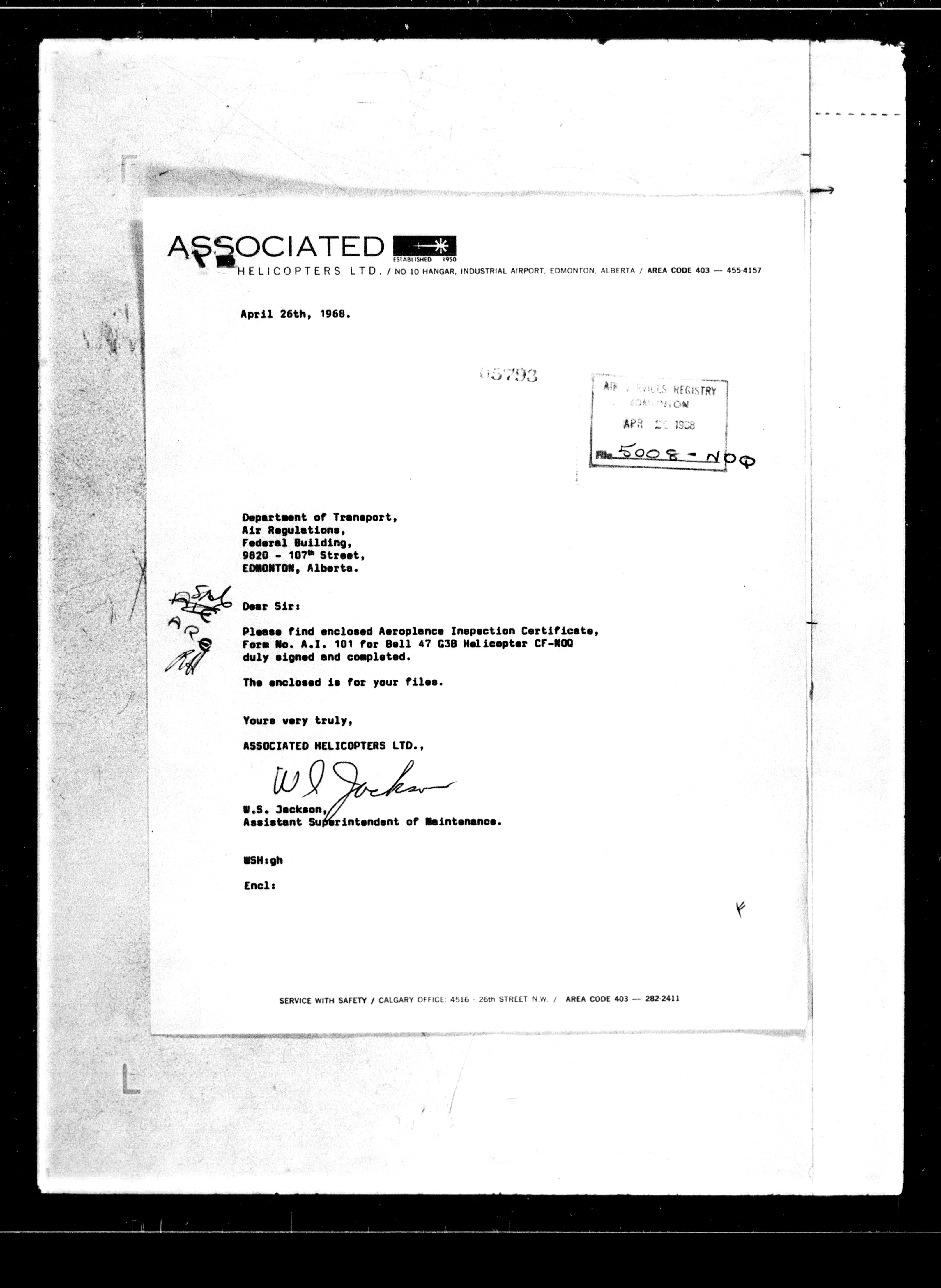 Department of Transport : Civil aircraft registration, inspection and operation files, block 5008, 1920-1986 - 7658