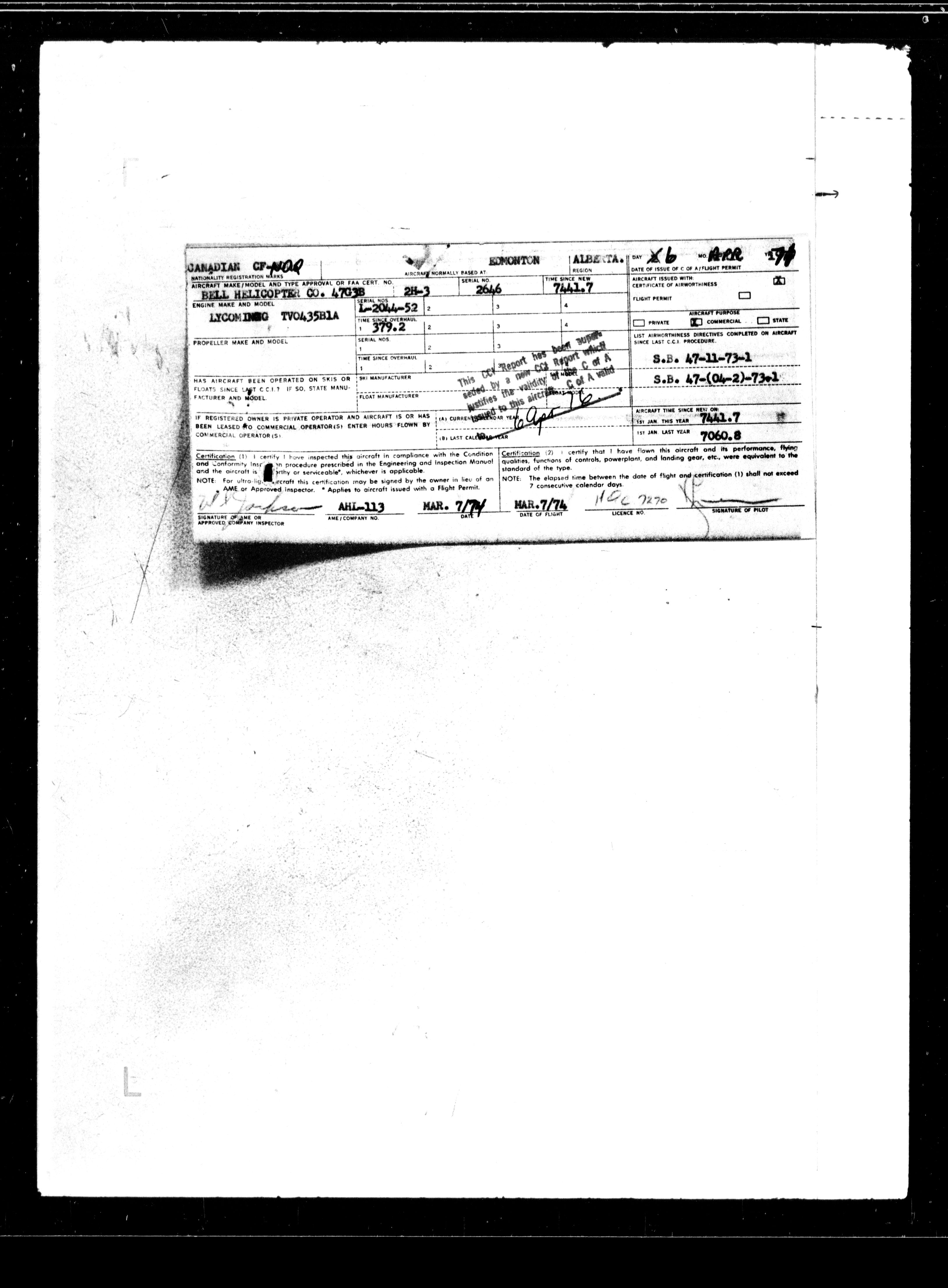 Department of Transport : Civil aircraft registration, inspection and operation files, block 5008, 1920-1986 - 7658