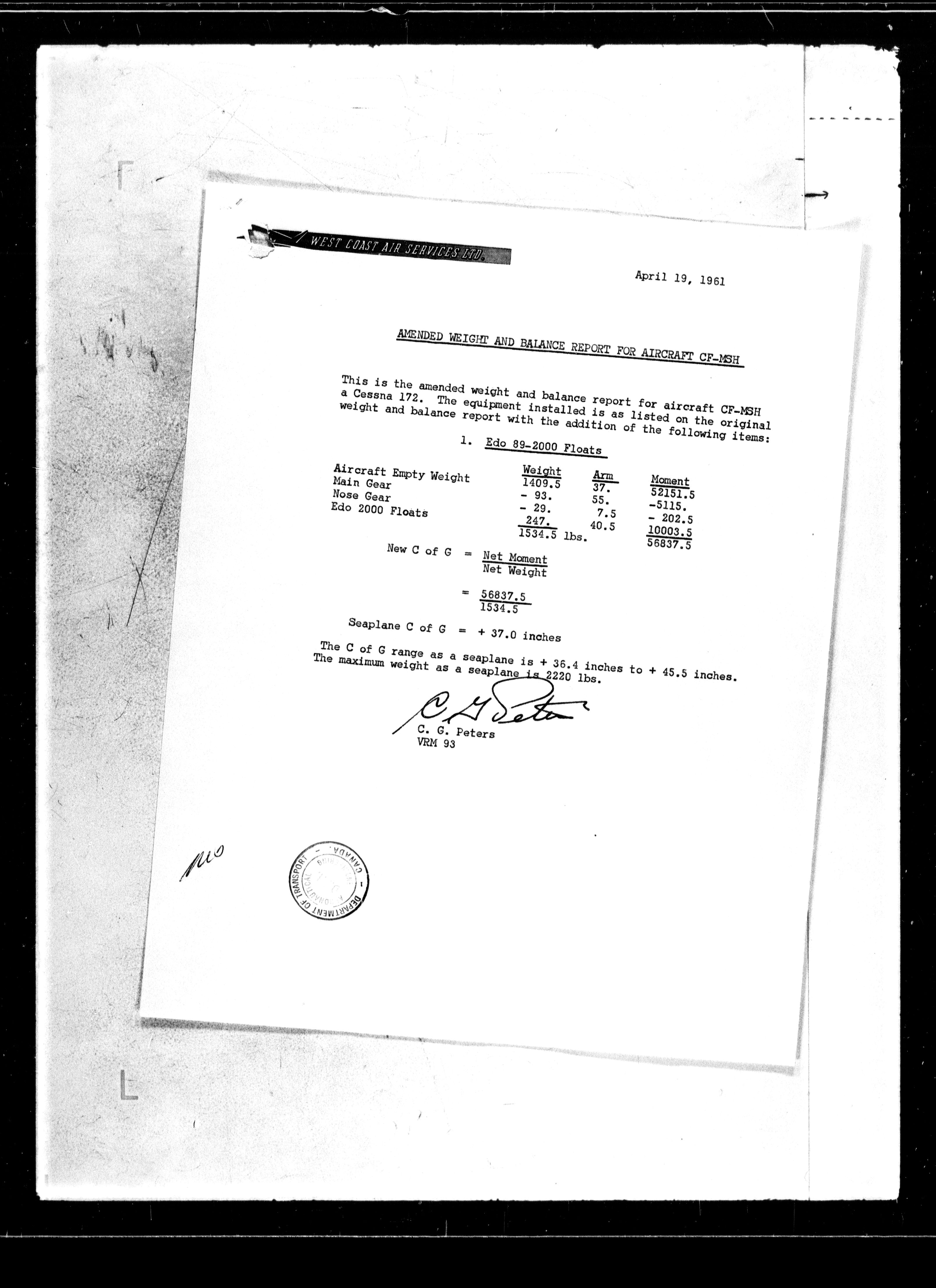 Department of Transport : Civil aircraft registration, inspection and operation files, block 5008, 1920-1986 - 7658