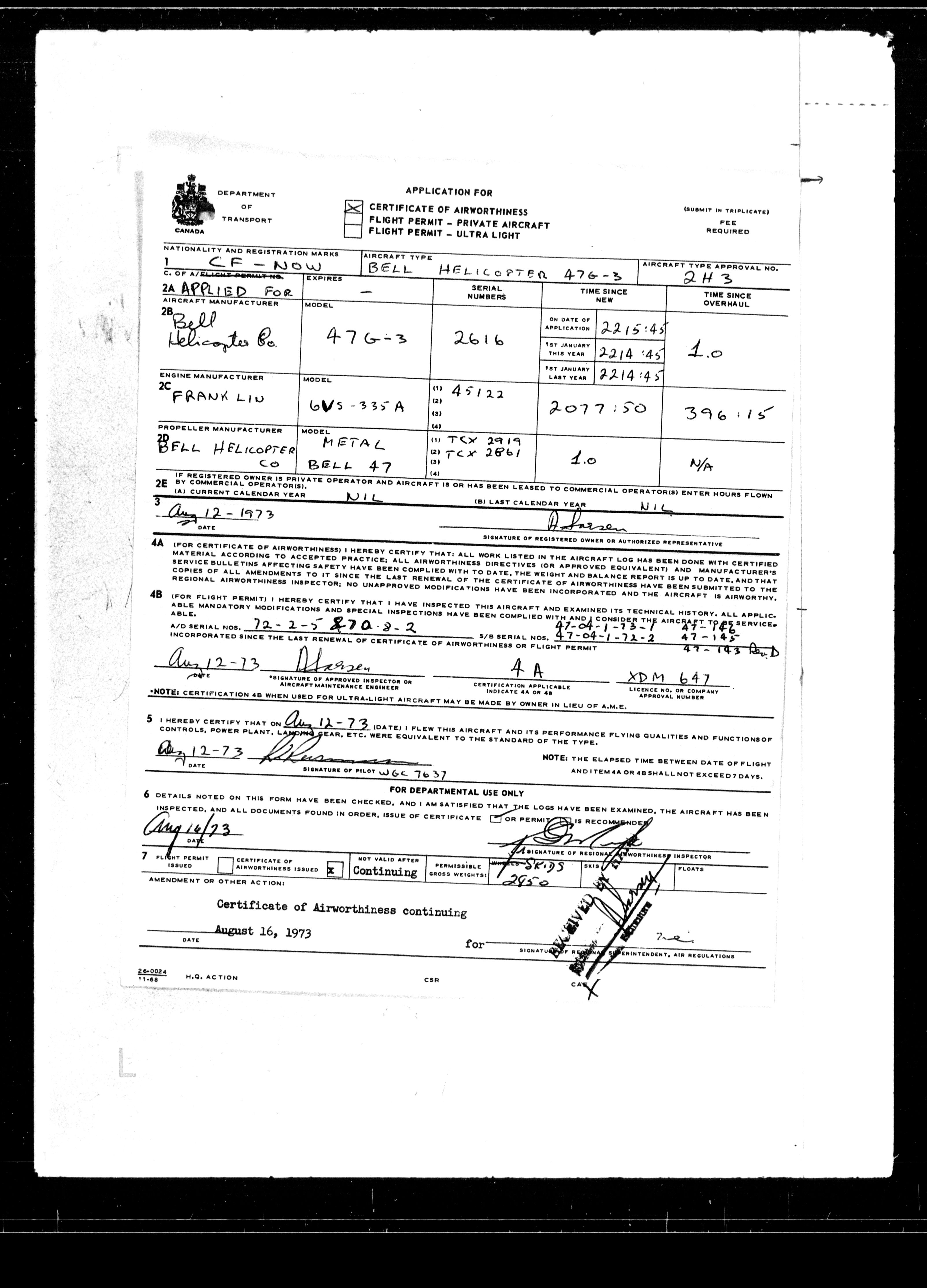 Department of Transport : Civil aircraft registration, inspection and operation files, block 5008, 1920-1986 - 7659