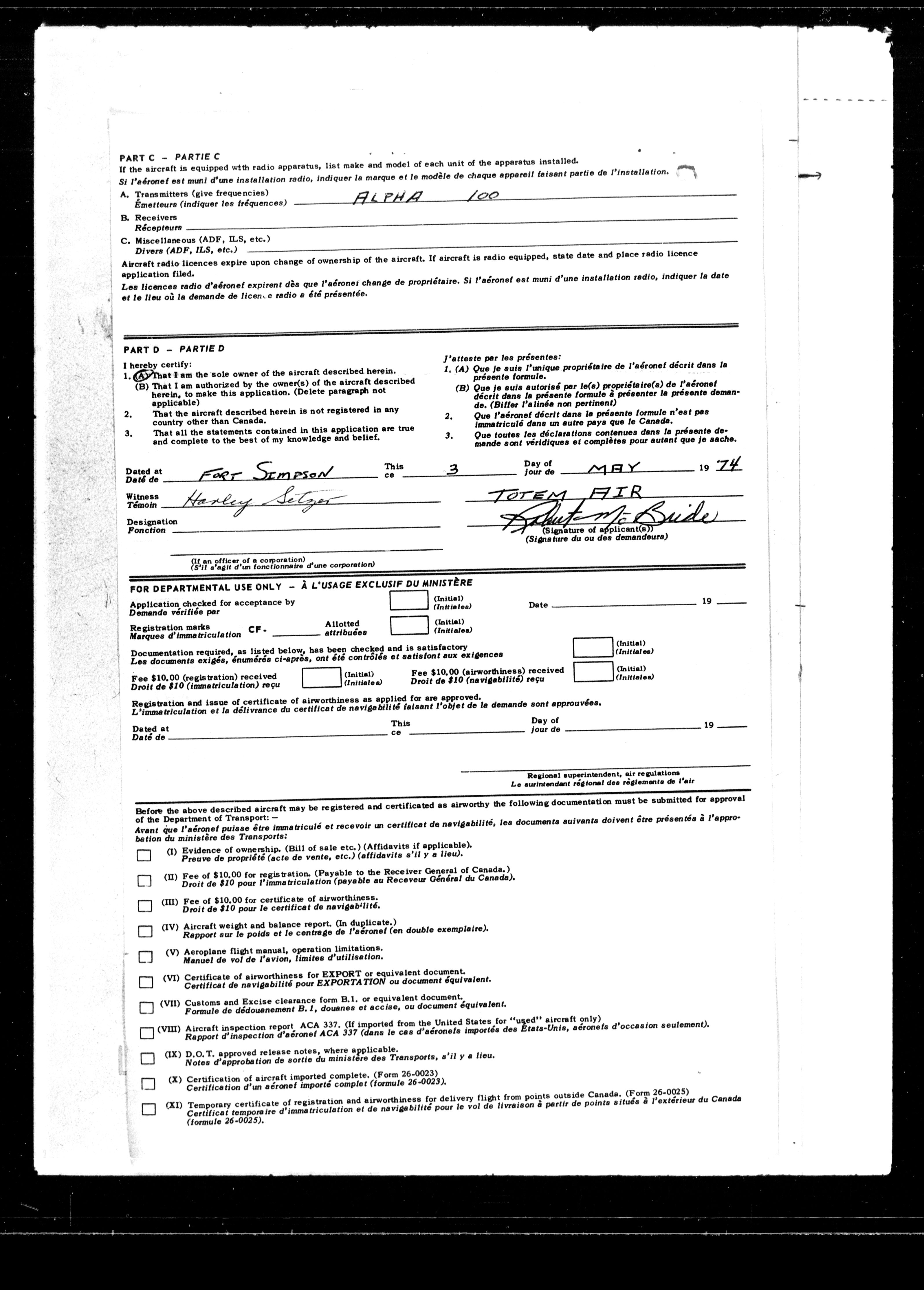 Department of Transport : Civil aircraft registration, inspection and operation files, block 5008, 1920-1986 - 7659