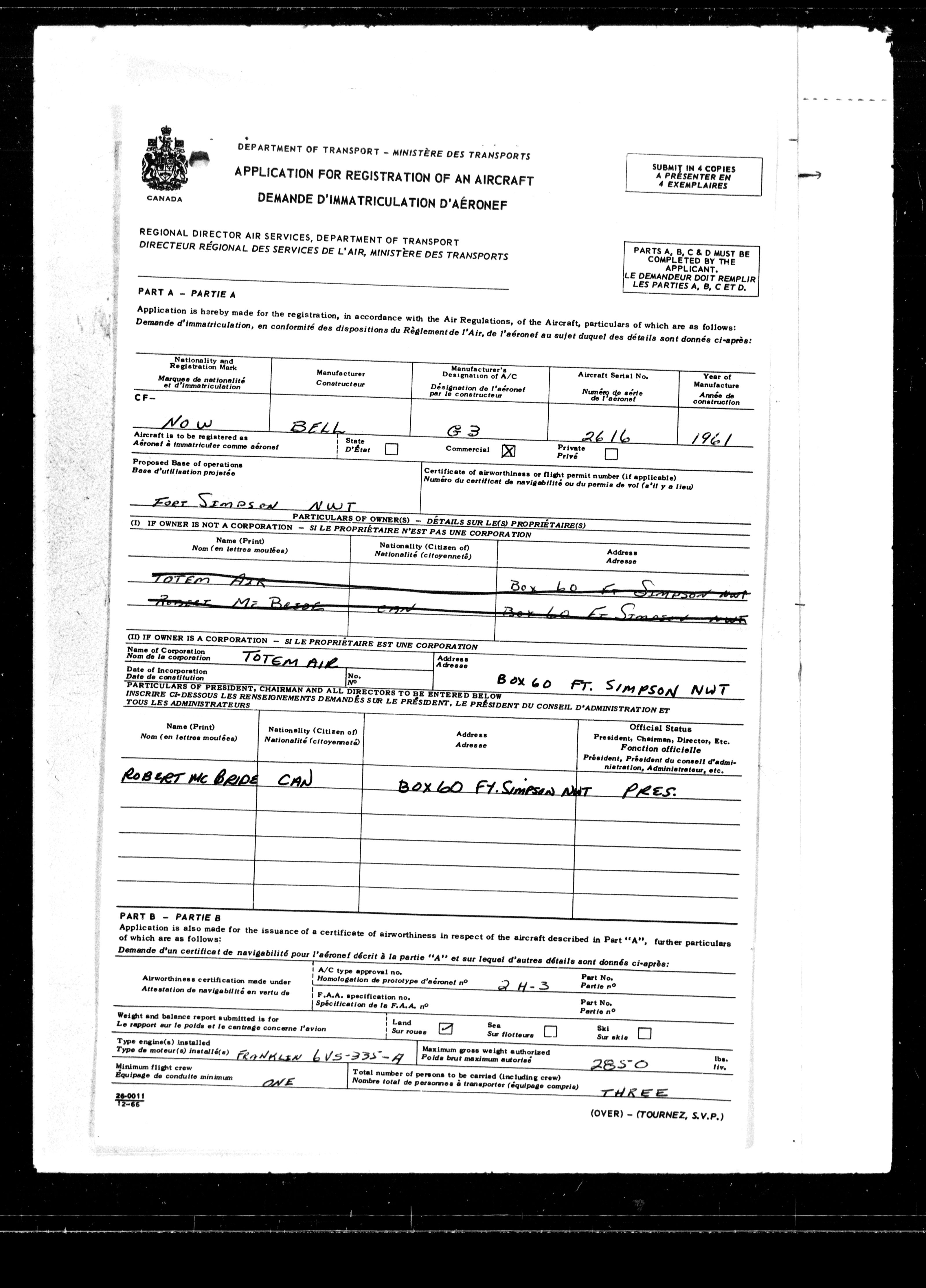 Department of Transport : Civil aircraft registration, inspection and operation files, block 5008, 1920-1986 - 7659