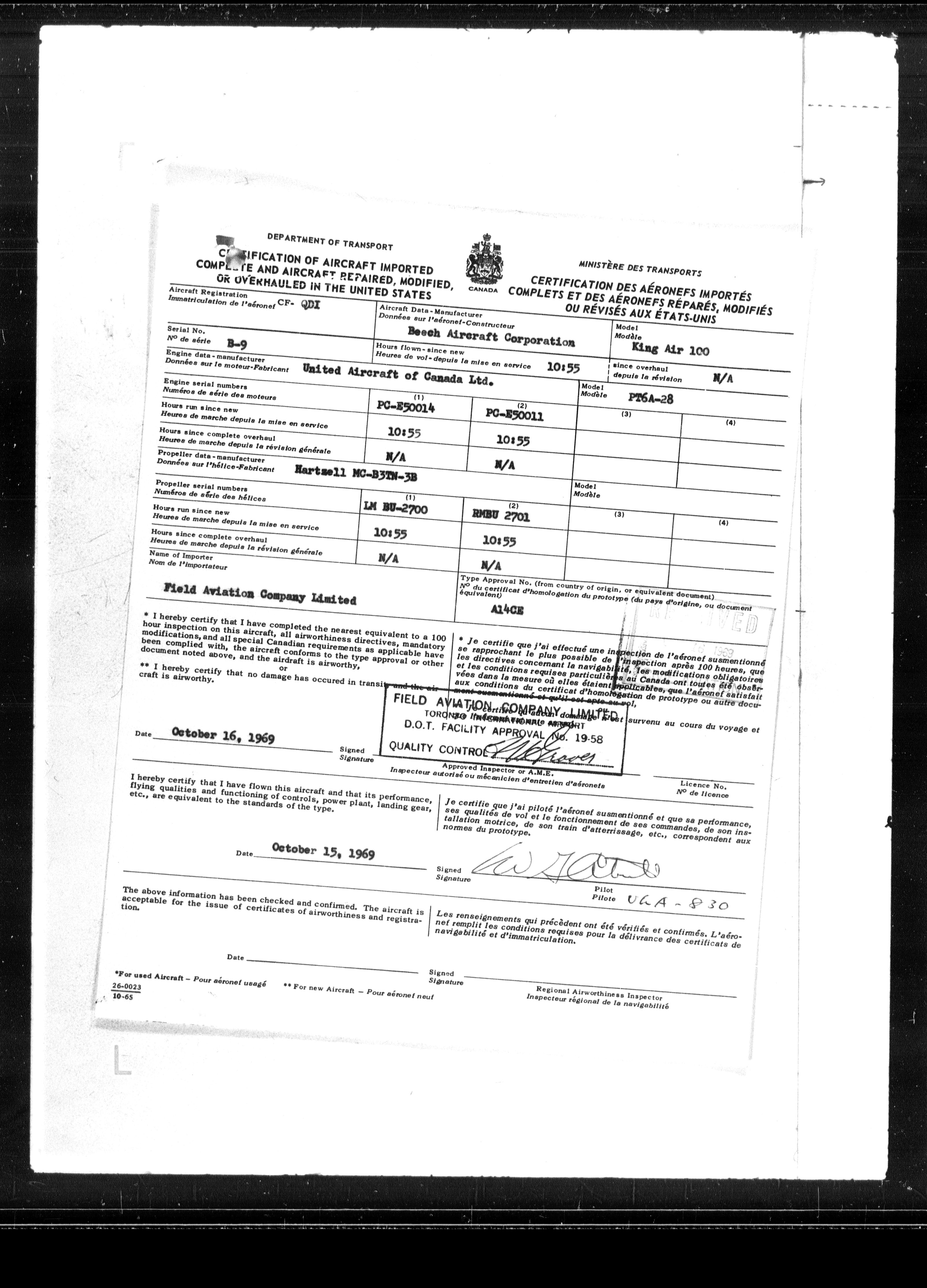 Department of Transport : Civil aircraft registration, inspection and operation files, block 5008, 1920-1986 - 7661