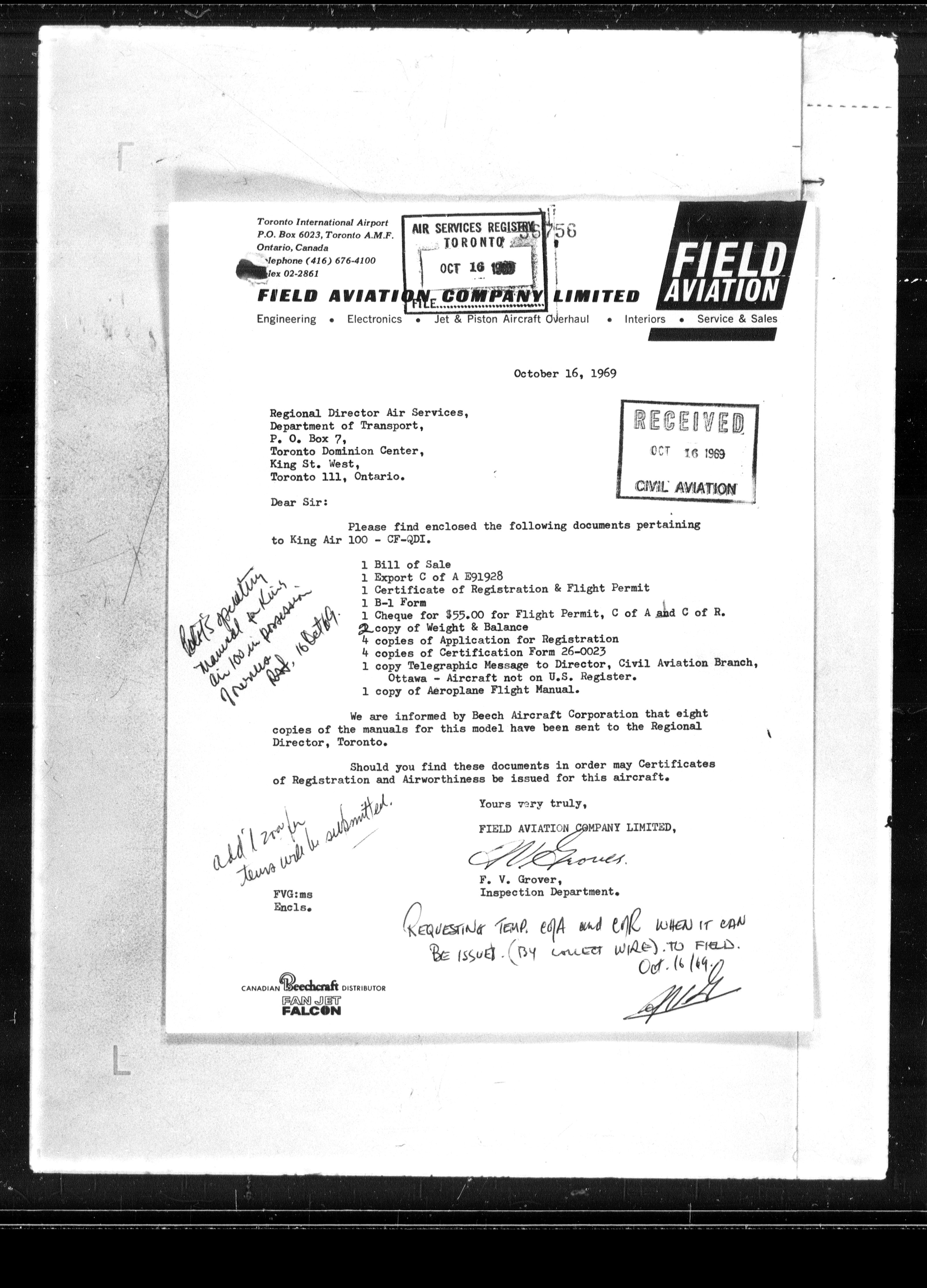 Department of Transport : Civil aircraft registration, inspection and operation files, block 5008, 1920-1986 - 7661