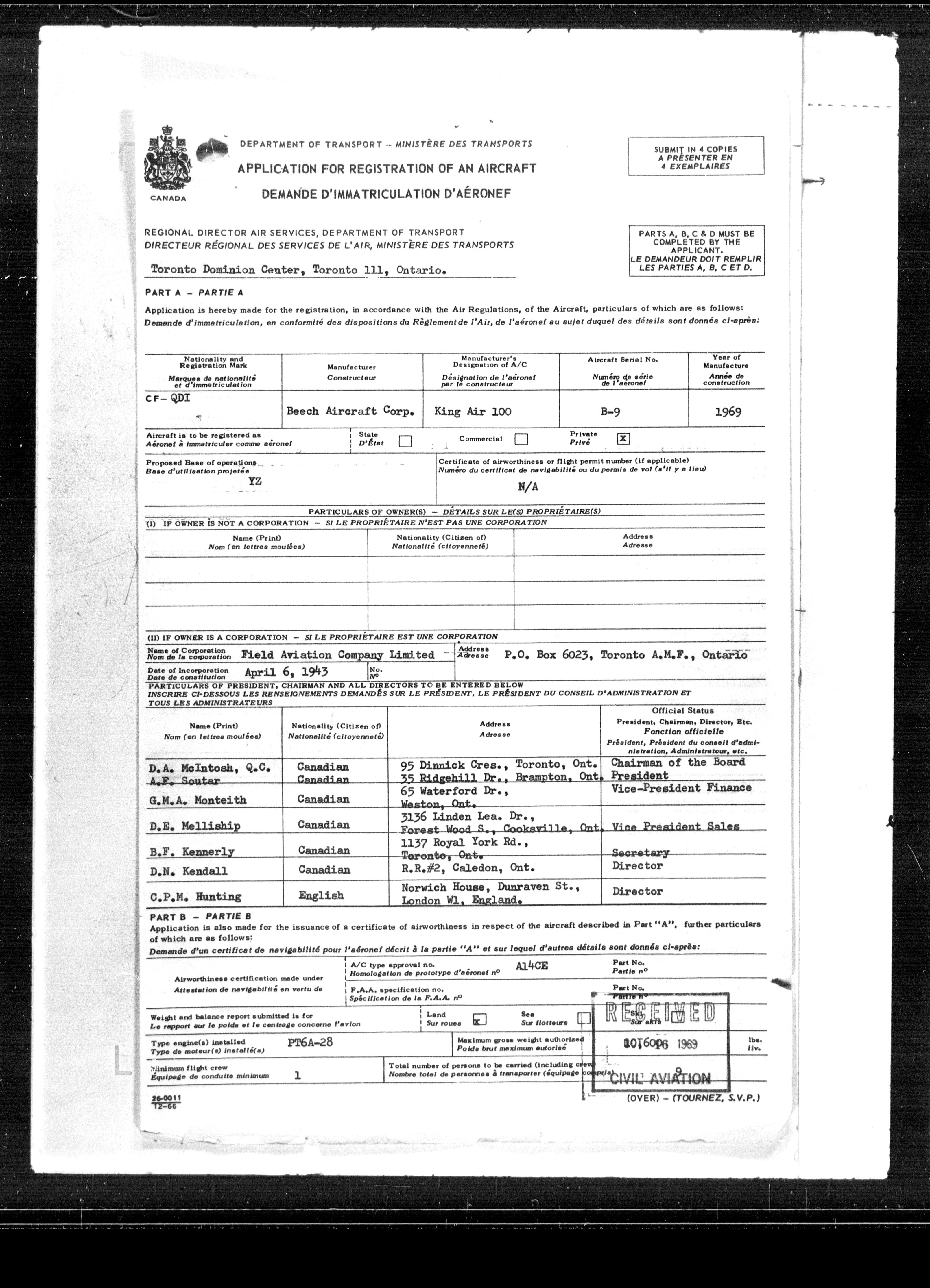 Department of Transport : Civil aircraft registration, inspection and operation files, 1920-1986 : T-7661