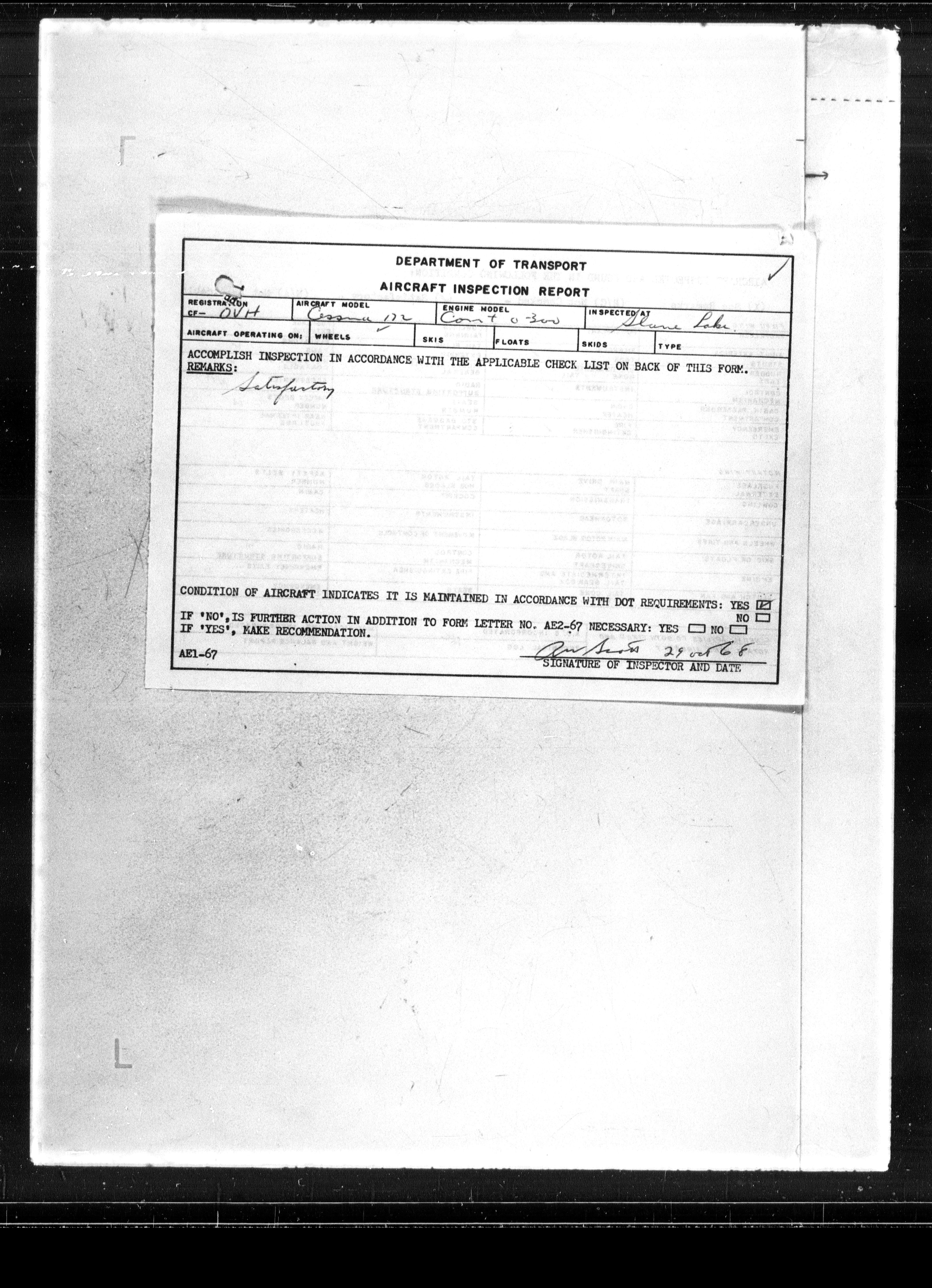Department of Transport : Civil aircraft registration, inspection and operation files, block 5008, 1920-1986 - 7661